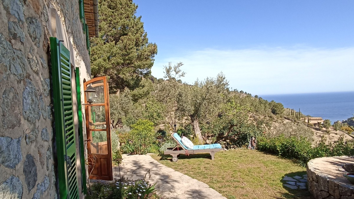 An der Küste von Deia gelegen, strahlt diese charmante Finca einen warmen rustikalen Charme aus, der die Essenz des kleinen Landlebens verkörpert. Das kleine, aber gut geschnittene Haus aus robustem Stein ist ein gemütlicher Rückzugsort mit authentischem Flair, nur 10 Gehminuten vom Dorf Deia entfernt. Im Erdgeschoss empfängt Sie ein geräumiger Wohnbereich, dessen Highlight ein typisch mallorquinischer Kamin namens „Escaufa Panxes” ist. Ein Holzofen trägt zum Komfort dieses großartigen Raums bei und umrahmt perfekt den atemberaubenden Blick auf die Küste von Deia. An diesen Raum schließt sich ein separates großes Esszimmer an, das zur Küche hin offen ist, die wiederum auf eine urige Frühstücksterrasse führt, ideal, um sonnige Morgenstunden zu genießen. Im Obergeschoss befinden sich zwei einladende Schlafzimmer und ein voll ausgestattetes Badezimmer, die alle einen malerischen Ausblick aus jedem Fenster bieten. Das Haus ist über wenige Stufen von der Straße aus erreichbar. Treten Sie nach draußen und entdecken Sie einen reizvollen Essbereich im Freien vor dem Haus, während Sie hinter dem Haus zu einem sorgfältig gepflegten Olivenhain gelangen, der sanft den Hügel hinaufsteigt und reichlich Platz für gemütliche Zusammenkünfte bietet und Ihnen die Möglichkeit gibt, mit den 60 Bäumen des Anwesens Ihr eigenes Olivenöl herzustellen. Trotz der Nähe zur Bergstraße von Deia herrscht im Haus eine gewisse Ruhe, die Sie in eine ungestörte Atmosphäre hüllt.