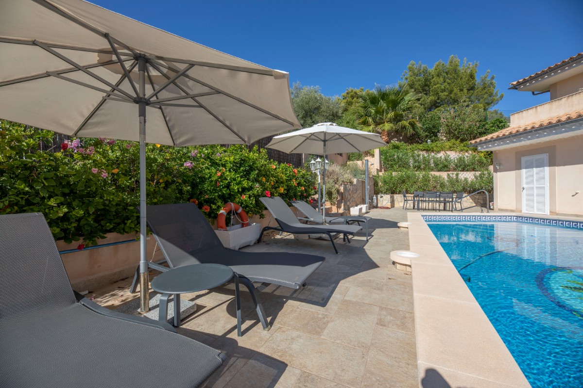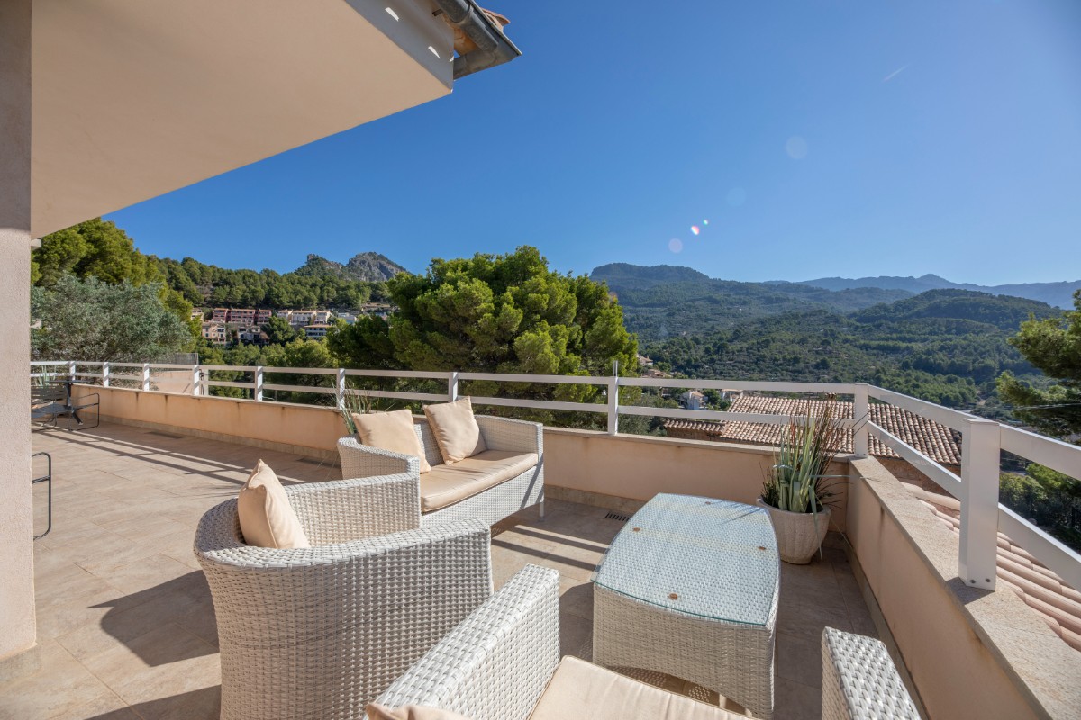 Diese komfortable Neubauvilla liegt in den Hügeln von Port de Sóller und bietet einen Panoramablick auf die umliegenden Berge der Tramuntana. Über zwei Etagen verfügt das Haus über drei Schlafzimmer und drei Badezimmer. Im unteren Bereich gibt es einen geräumigen Wohnbereich mit offener Küche; Essbereich offen zur Terrasse, ein Schlafzimmer, ein Badezimmer und Hauswirtschaftsraum. Das Haus ist umgeben von einer grosszügigen Terrasse und alle Zimmer haben direkten Zugang. Der tiefe Pool ist ideal für eine Erfrischung an den heißen Sommertagen und die Sommerküche ist ideal zur Bewirtung von Gästen rund um den Pool. Im Obergeschoss befinden sich die beiden anderen Schlafzimmer, beide mit Ankleidezimmer und Badezimmer en suite. Auf der Straßenebene gibt es eine große Garage und auch einen Abstellraum sowie den Maschinenraum für den Pool. Das Haus ist sehr gut gestaltet und aufgrund der Südausrichtung sehr hell. Zudem verfügt es über Fenster mit Doppelverglasung, Klimaanlage warm und kalt, Internet per Glasfaser und eine vollständig beleuchtete Terrasse rund um das Haus.