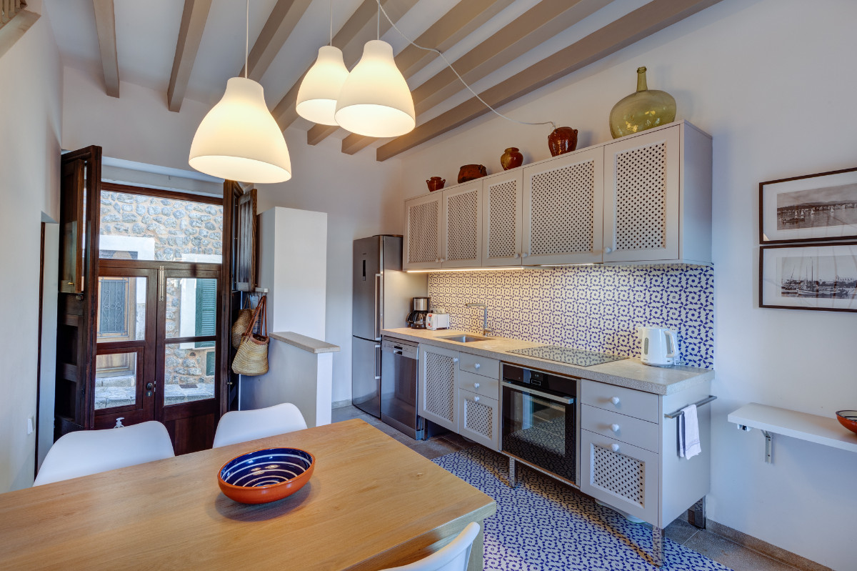 Dieses wunderschön renovierte Stadthaus befindet sich im historischen Stadtteil Santa Catalina von Port de Sóller – dem Fischerdorf- nur wenige Schritte von den zahlreichen Restaurants und Yachthafen entfernt. Dennoch behält das Haus durch seine Lage in einer kleinen Sackgasse seine Ruhe. Dieses charakteristische Haus erstreckt sich über 5 Etagen und bietet bequem Platz für 4 Personen. Für mehr Komfort sorgen die zwei Eingänge des Hauses. So hat man Zugang zum mittleren Bereich des Hauses und kann dort mit dem PKW halten und Einkäufe direkt in der Küche entladen; und ebenso gibt es Zugang vom Erdgeschoss des Hauses. Ausgestattet mit modernem Wohnkomfort, Klimaanlage, WLAN bietet die Immobilie einen tollen Ausblick von den Balkonen und Fenstern.