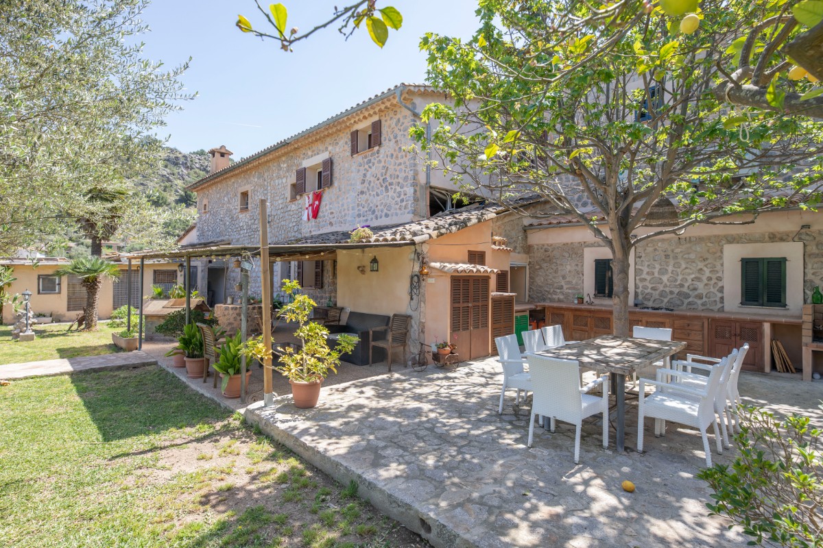 Dieses mallorquinische Landhaus hat ca. 156 m2 bebaute Fläche befindet sich in Port de Sóller, nur wenige Minuten zu Fuss vom Strand und den Restaurants entfernt. Ursprünglich eine grosse Finca und später in drei Teile unterteilt, handelt es sich hier um den mittleren Teil, welcher zum Verkauf steht. Das Haus geniesst viel Sonne und einen unverbaubaren Blick auf die umliegenden Gärten und Berge. Das Haus hat zwei Etagen und einen Keller. Im Erdgeschoss befindet sich eine geräumige Küche mit Zugang zur Außenterrasse nebst Garten und Badezimmer. Darüberhinaus gibt es einen kleinen Wohnbereich mit Holzofen. Das erste Schlafzimmer befindet sich in einem Zwischengeschoss und im Obergeschoss befinden sich die anderen Schlafzimmer sowie ein grosses Badezimmer. Eines der Schlafzimmer hat einen Ankleideraum, welcher auch zu einem Badezimmer umgebaut werden könnte. Die Zufahrt mit dem Auto erfolgt bequem über eine Privatweg und auf dem Grundstück ist genug Platz, um mehrere Autos unter dem Carport oder in der Garage zu parken.