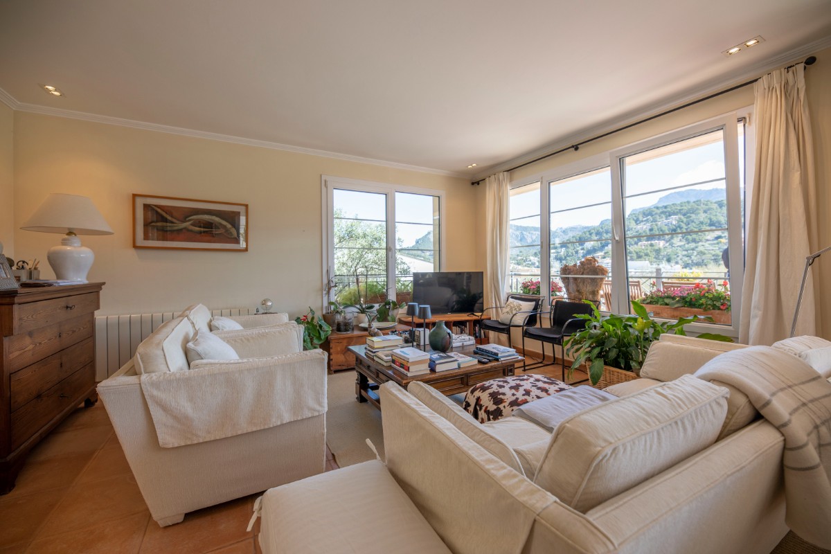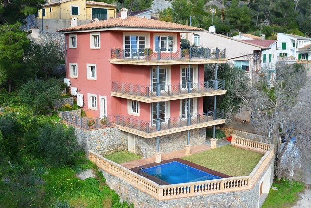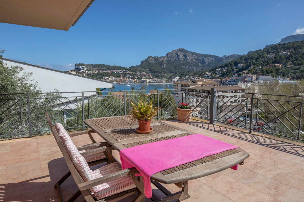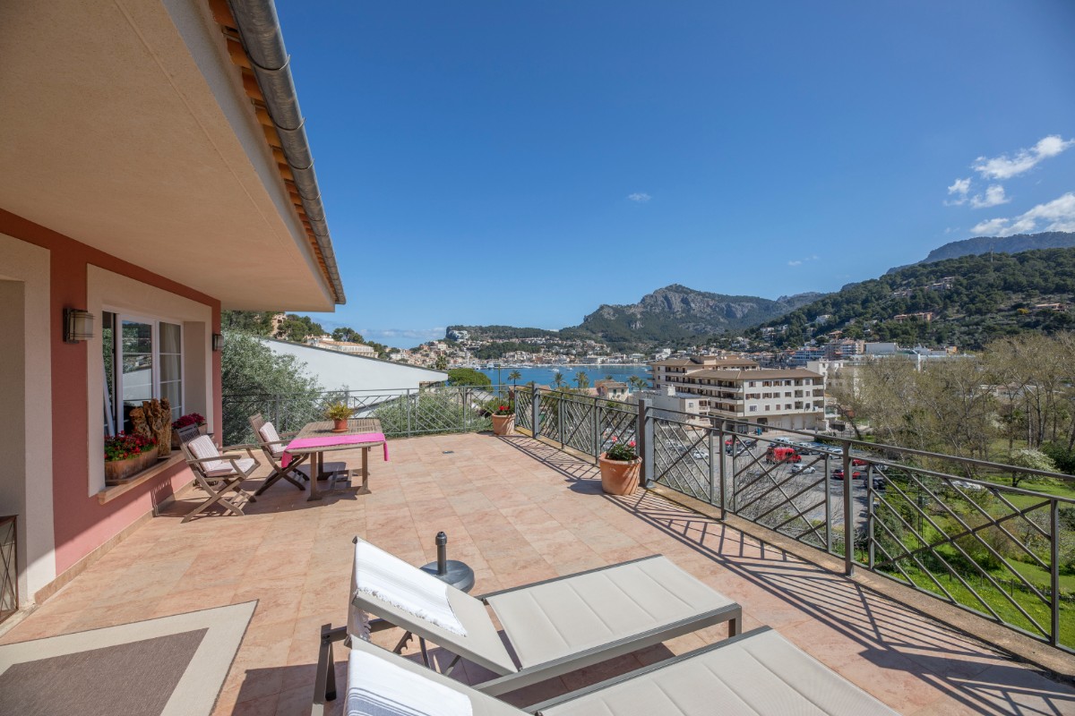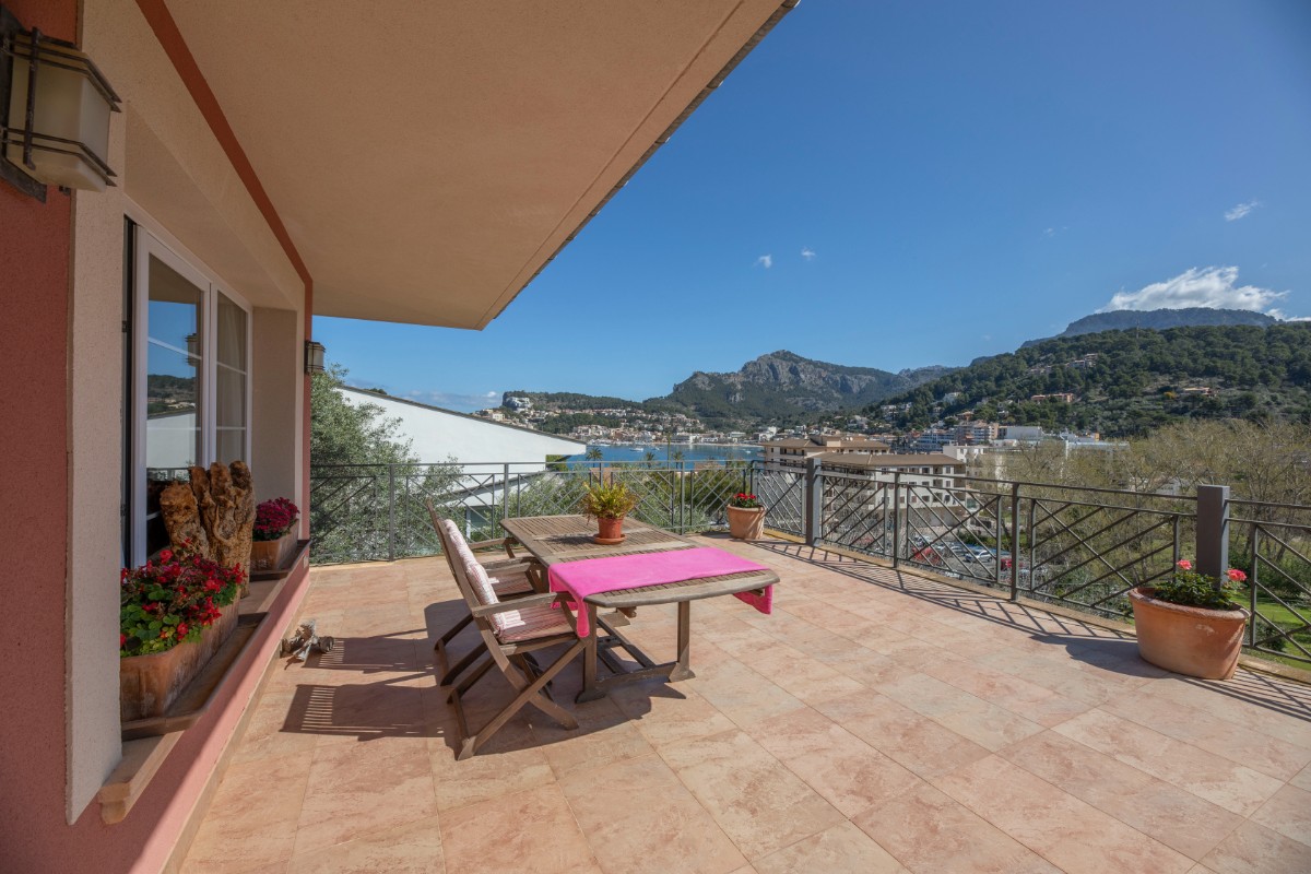 Diese Villa besticht durch Ihre absolut zentrale aber auch ruhige Lage in Port de Sóller. In nur wenigen Schritten gelangt man zum Strand Repic und zu den Restaurants der Gegend. Die Hanglage bietet einen wunderschönen Blick zur Bucht und zu den Bergen. Die dreietagige Villa hat zwei Zugänge und kann sowohl von der Garagenebene als auch von der oberen Ebene des Grundstücks betreten werden. Im oberen Geschoss befindet sich das Haupthaus. Oberst liegen das Wohnzimmer mit einer fantastisch grossen Sonnenterrasse mit Blick zur Bucht, ein Gäste WC, und die geräumige Küche welche nach Wunsch ausgestattet wird. Über die Treppe gelangt man zum unteren Geschoss mit Hauswirtschaftsraum und zwei Schlafzimmern und zwei Badezimmern, eines davon en suite. Das unterste Geschoss ist eine separate Gästewohnung mit grossem Wohnzimmer, offener Wohnküche und kleiner Frühstücksterrasse, zwei Schlafzimmer und ein Badezimmer. Im Garten lädt ein Pool mit Sonnenterrasse aus Teakholz zum Sonnenbaden und Schwimmen ein. Ein Abstellraum ist ideal zum Lagern der Gartenmöbel. Das gesamte Haus hat Klimaanlage warm/ kalt und das Haupthaus ist mit Öl Zentralheizung ausgestattet. Zudem bietet eine Garage Platz für 2 PKW. Für den zukünftigen Erwerbe ist interessant zu wissen, dass Gästewohnung und Familienhaus separate Grundbücher haben. Die Immobilie wird allerdings nur als Gesamtes angeboten. Es besteht die Möglichkeit die Anzahl Schlafzimmer und Bäder zu erhöhen.