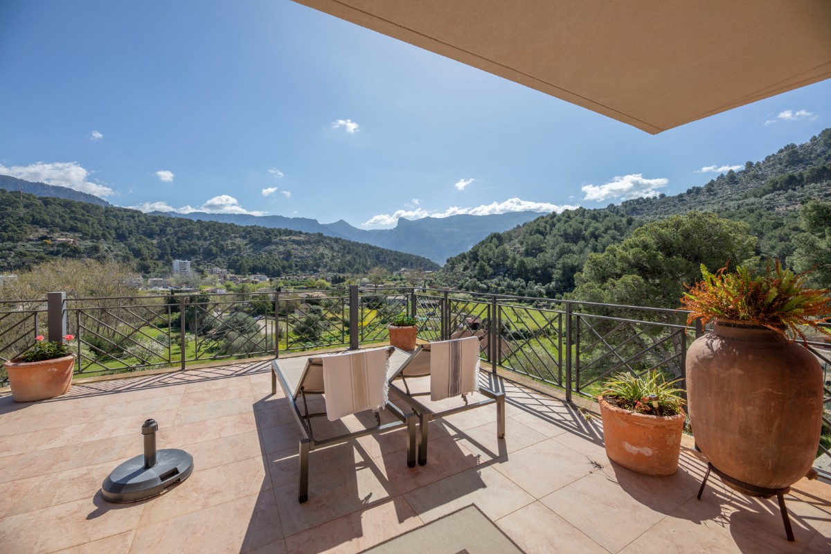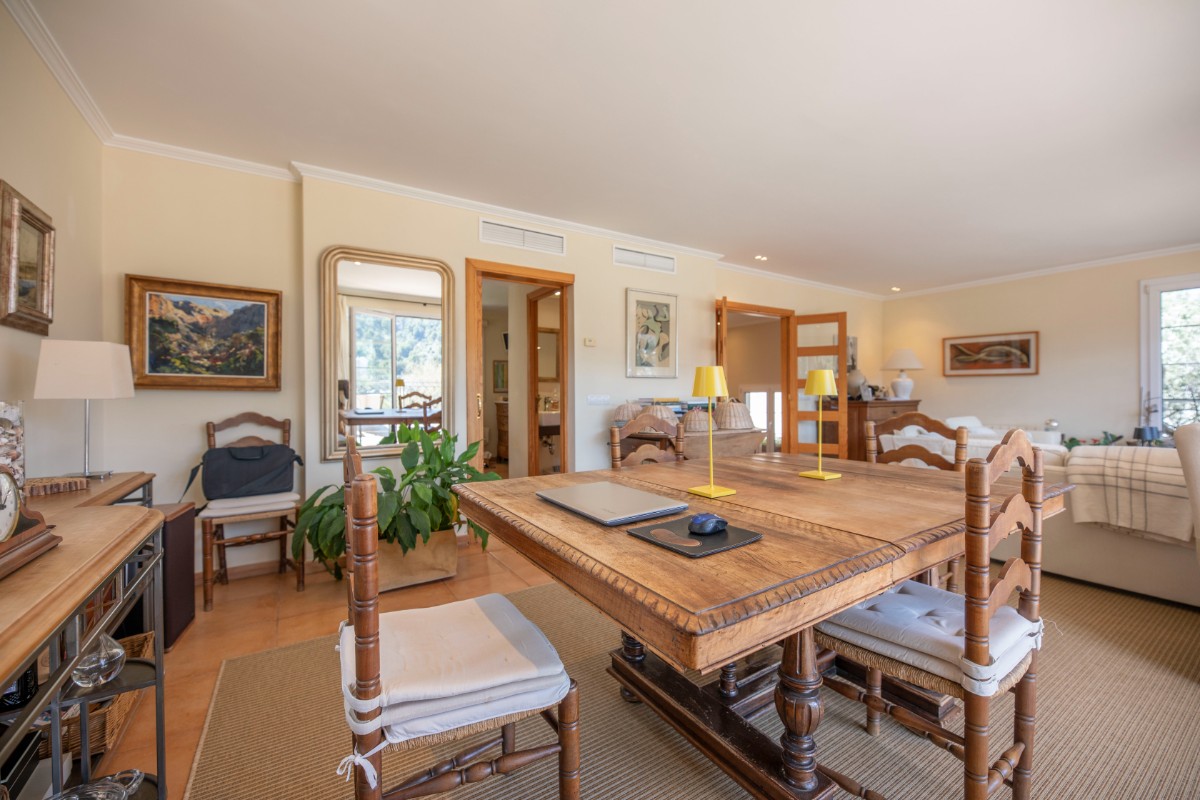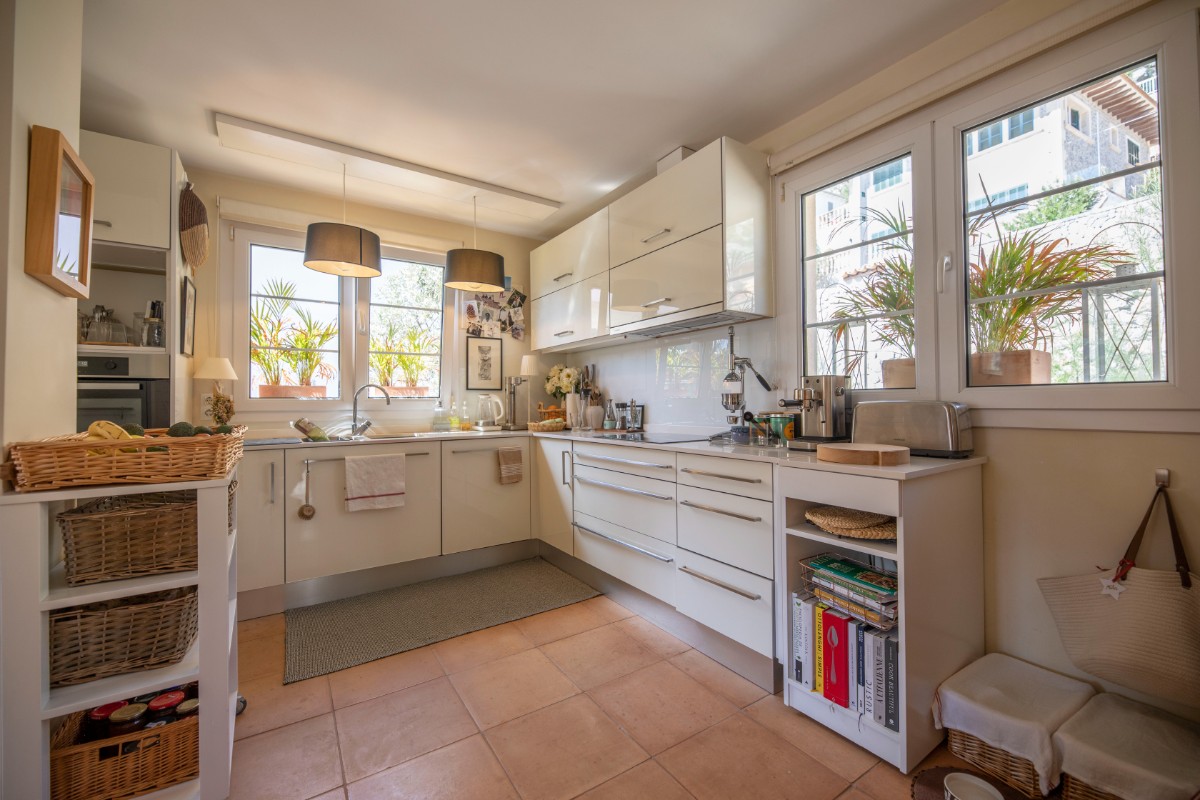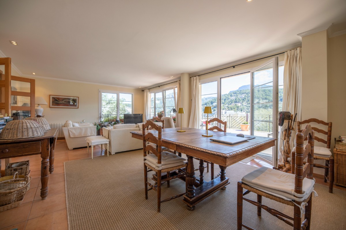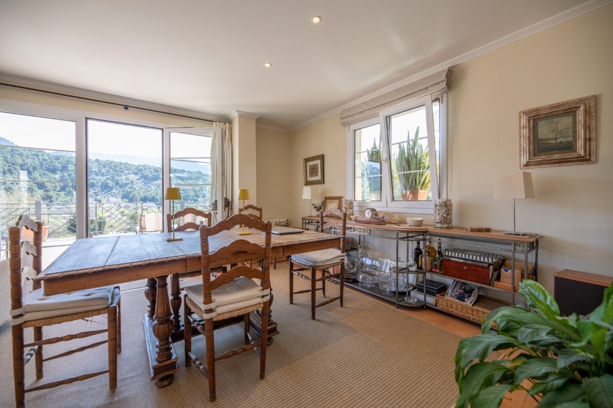 Diese Villa besticht durch Ihre absolut zentrale aber auch ruhige Lage in Port de Sóller. In nur wenigen Schritten gelangt man zum Strand Repic und zu den Restaurants der Gegend. Die Hanglage bietet einen wunderschönen Blick zur Bucht und zu den Bergen. Die dreietagige Villa hat zwei Zugänge und kann sowohl von der Garagenebene als auch von der oberen Ebene des Grundstücks betreten werden. Im oberen Geschoss befindet sich das Haupthaus. Oberst liegen das Wohnzimmer mit einer fantastisch grossen Sonnenterrasse mit Blick zur Bucht, ein Gäste WC, und die geräumige Küche welche nach Wunsch ausgestattet wird. Über die Treppe gelangt man zum unteren Geschoss mit Hauswirtschaftsraum und zwei Schlafzimmern und zwei Badezimmern, eines davon en suite. Das unterste Geschoss ist eine separate Gästewohnung mit grossem Wohnzimmer, offener Wohnküche und kleiner Frühstücksterrasse, zwei Schlafzimmer und ein Badezimmer. Im Garten lädt ein Pool mit Sonnenterrasse aus Teakholz zum Sonnenbaden und Schwimmen ein. Ein Abstellraum ist ideal zum Lagern der Gartenmöbel. Das gesamte Haus hat Klimaanlage warm/ kalt und das Haupthaus ist mit Öl Zentralheizung ausgestattet. Zudem bietet eine Garage Platz für 2 PKW. Für den zukünftigen Erwerbe ist interessant zu wissen, dass Gästewohnung und Familienhaus separate Grundbücher haben. Die Immobilie wird allerdings nur als Gesamtes angeboten. Es besteht die Möglichkeit die Anzahl Schlafzimmer und Bäder zu erhöhen.