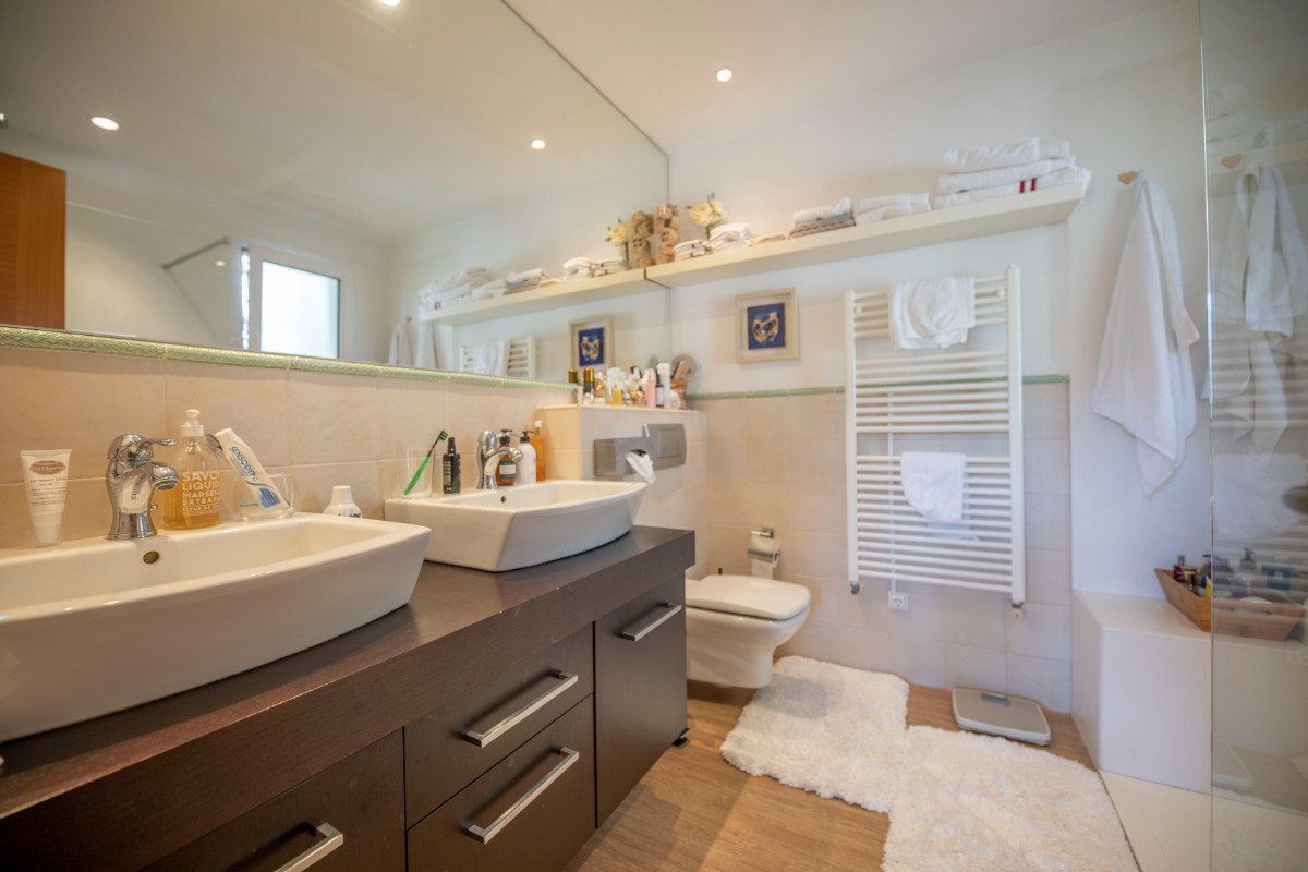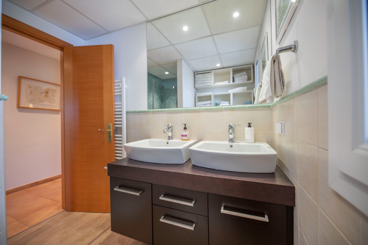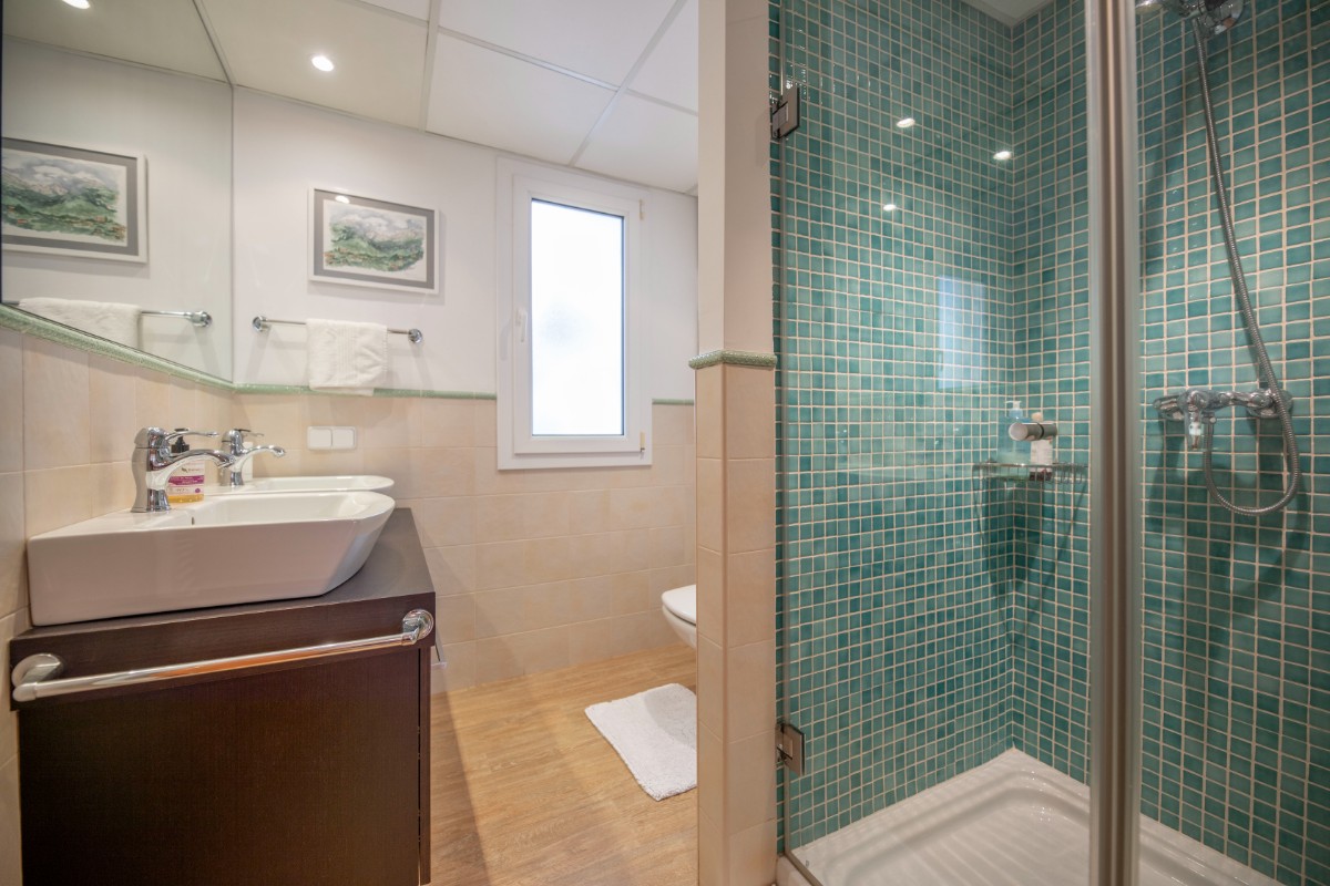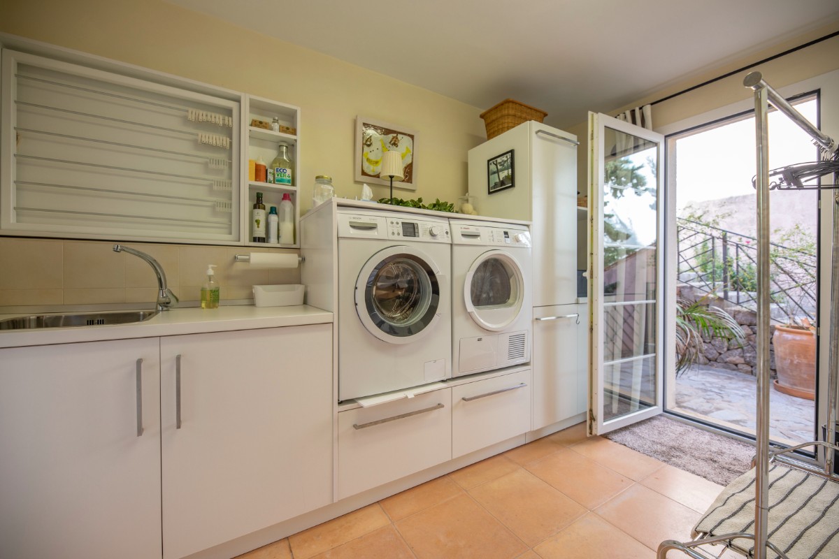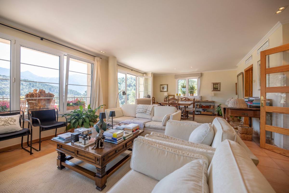 Diese Villa besticht durch Ihre absolut zentrale aber auch ruhige Lage in Port de Sóller. In nur wenigen Schritten gelangt man zum Strand Repic und zu den Restaurants der Gegend. Die Hanglage bietet einen wunderschönen Blick zur Bucht und zu den Bergen. Die dreietagige Villa hat zwei Zugänge und kann sowohl von der Garagenebene als auch von der oberen Ebene des Grundstücks betreten werden. Im oberen Geschoss befindet sich das Haupthaus. Oberst liegen das Wohnzimmer mit einer fantastisch grossen Sonnenterrasse mit Blick zur Bucht, ein Gäste WC, und die geräumige Küche welche nach Wunsch ausgestattet wird. Über die Treppe gelangt man zum unteren Geschoss mit Hauswirtschaftsraum und zwei Schlafzimmern und zwei Badezimmern, eines davon en suite. Das unterste Geschoss ist eine separate Gästewohnung mit grossem Wohnzimmer, offener Wohnküche und kleiner Frühstücksterrasse, zwei Schlafzimmer und ein Badezimmer. Im Garten lädt ein Pool mit Sonnenterrasse aus Teakholz zum Sonnenbaden und Schwimmen ein. Ein Abstellraum ist ideal zum Lagern der Gartenmöbel. Das gesamte Haus hat Klimaanlage warm/ kalt und das Haupthaus ist mit Öl Zentralheizung ausgestattet. Zudem bietet eine Garage Platz für 2 PKW. Für den zukünftigen Erwerbe ist interessant zu wissen, dass Gästewohnung und Familienhaus separate Grundbücher haben. Die Immobilie wird allerdings nur als Gesamtes angeboten. Es besteht die Möglichkeit die Anzahl Schlafzimmer und Bäder zu erhöhen.