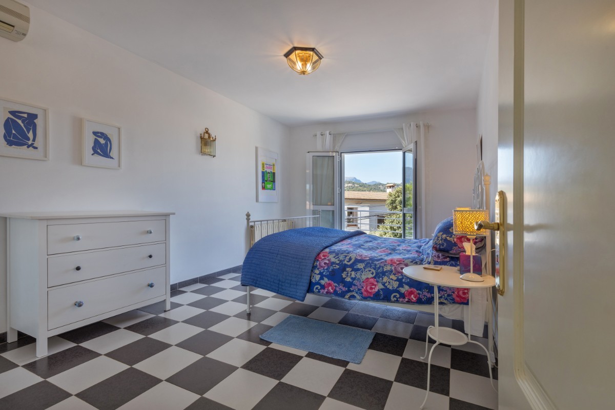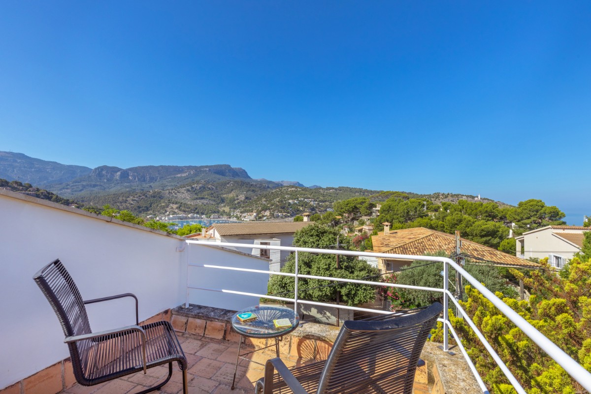 Die Villa im charmanten Port de Sóller verbindet mühelos Komfort und Funktionalität und ist somit die ideale Wahl für Familien, die einen ruhigen Rückzugsort suchen. Das in den 90er Jahren erbaute Haus ist strategisch günstig gelegen und verfügt über einen großzügigen Grundriss im Erdgeschoss, bestehend aus einem gemütlichen Wohnzimmer, einer voll ausgestatteten Küche, einem Schlafzimmer und einem praktischen Badezimmer mit Dusche. Im Obergeschoss befinden sich drei großzügige Schlafzimmer und ein weiteres Badezimmer, sodass ausreichend Platz für die ganze Familie vorhanden ist. Jedes Zimmer bietet einen großartigen Blick auf die Berge und unterstreicht die heimelige Atmosphäre der Residenz. Darüber hinaus verfügt die Villa über Terrassen, die das Anwesen umgeben, einen erfrischenden Pool und einen Grillbereich, der sich perfekt für Zusammenkünfte im Freien und zum Entspannen eignet. Die Dachterrasse bietet einen Panoramablick auf den malerischen Hafen und verleiht dem Anwesen einen zusätzlichen Hauch von Luxus. Für zusätzlichen Komfort verfügt die Villa über eine Tiefgarage, Kellerräume zur Lagerung und einen pflegeleichten Garten, der das Leben erleichtert. Mit ihrer erstklassigen Lage in einer gut etablierten Nachbarschaft, nur wenige Gehminuten vom Strand und dem lebhaften Hafen entfernt, verkörpert diese Villa die Essenz eines ruhigen mediterranen Lebensstils in einer malerischen Umgebung.