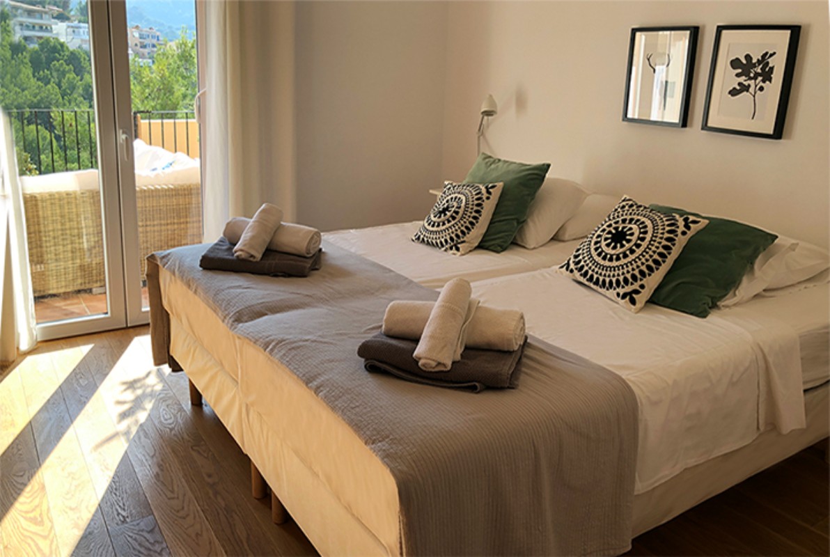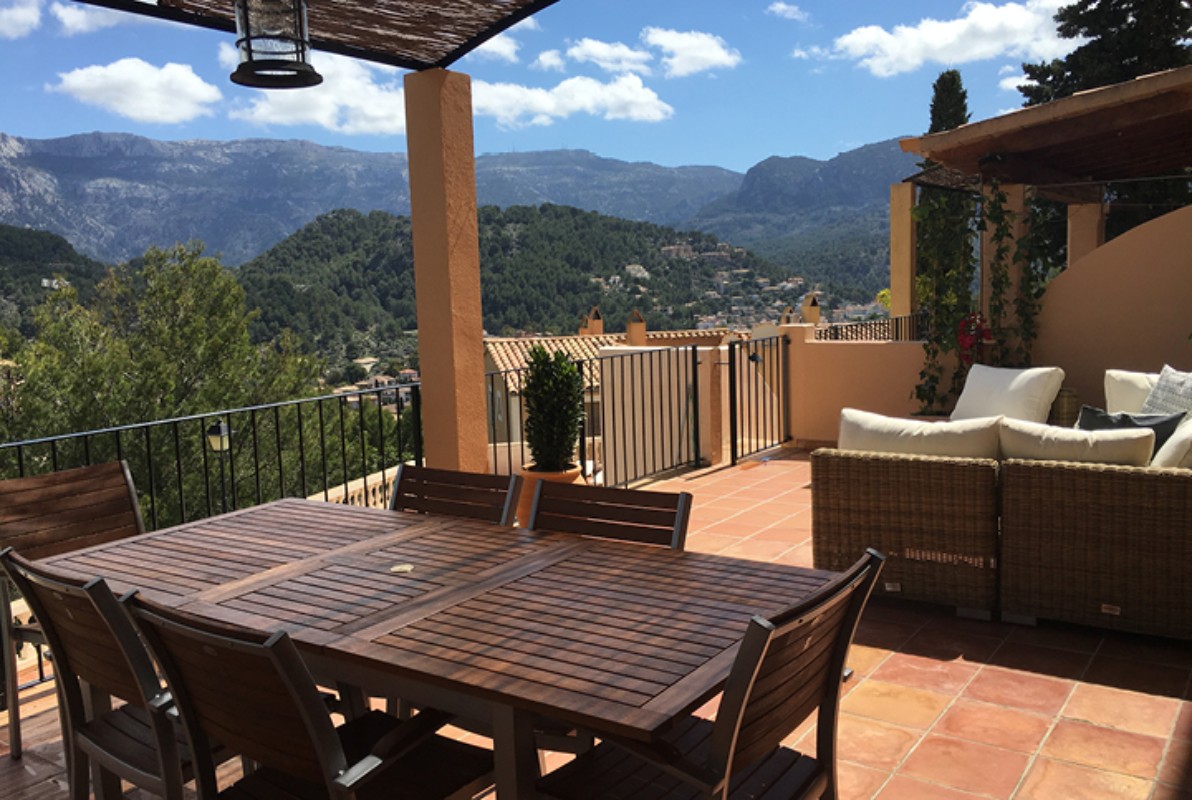 Diese schöne Wohnung liegt in den Hügeln von Port de Sóller im Tramuntana-Gebirge (Weltkulturerbe) in Mallorca. Die Wohnung besteht aus 3 Schlafzimmern (insgesamt 6 komfortable Betten), 2 Bäder, Küche, Ess- / Wohnzimmer und eine große Terrasse von ca. 35 qm. Das Apartment genießt freien Blick auf die Berge und von der Terrasse aus haben Sie direkten Zugang zum Gemeinschaftspool. Von der Wohnung erreicht man in etwa 10 min zu Fuß bergab den schönen Hafen und die Strände von Port de Sóller, mit Supermärkten und Restaurants. Weitere Details/Info: Wifi, Klimaanlage warm und kalt, Geschirrspüler, Waschmaschine, Sat-TV, Kamin. 30-40 Autominuten von Palma (28 km) und vom Flughafen (36 km), nur Nichtraucher, keine Haustiere.