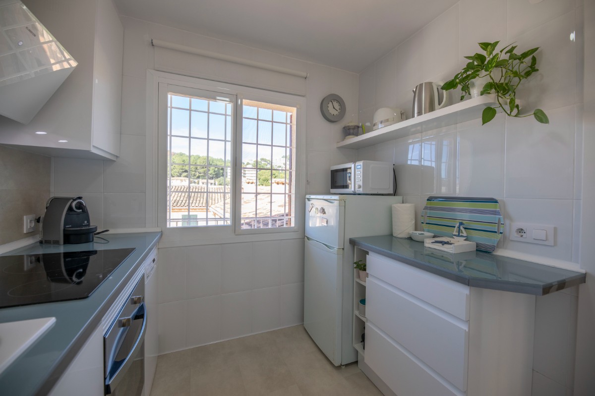 Diese modern renovierte Wohnung besticht durch Ihre Lage, nur wenige Schritte vom Strand von Port de Sóller entfernt. Wenn man die Treppen in den 4 Stock erklommen hat wird man mit einer fantastischen Aussicht auf die historische Finca von Hotel Es Port belohnt, sowie die umliegenden Berge der Tramuntana. Die Wohnung verfügt über ein Schlafzimmer mit einem Doppelbett von 1,50 x 2,00 m. Die Küche ist sehr gut ausgestattet inklusive Waschmaschine und Geschirrspülmaschine. Das Badezimmer hat eine Dusche. Der Wohnbereich ist hell und freundlich mit WIFI und TV und führt direkt auf die überdachte Terrasse, wohl der meist genutzte Bereich dieser kleinen Wohnung . Hier finden 4 Personen Platz um zu Frühstücken oder einfach bei einem Glas Wein den Abend ausklingen zu lassen. Im Wohnbereich gibt es Klimaanlage und in den Deckenventilator im Schlafzimmer. Diese Wohnung ist sowohl für Strandurlauber als auch Wanderer ein perfekter Ausgangspunkt zum urlauben.