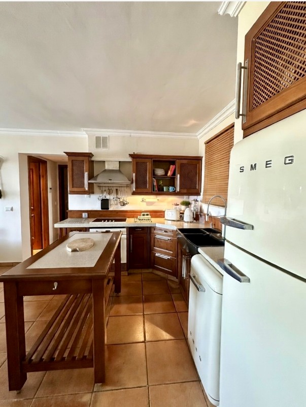Die Küche ist komplett ausgestattet mit Geschirrspüler, Waschmaschine, Mikrowelle, Backofen, Kochfeld und Kühlschrank. Zusätzlich verfügt die Terrasse über einen Grill, ideal für gemütliche Mahlzeiten im Freien zu jeder Jahreszeit.