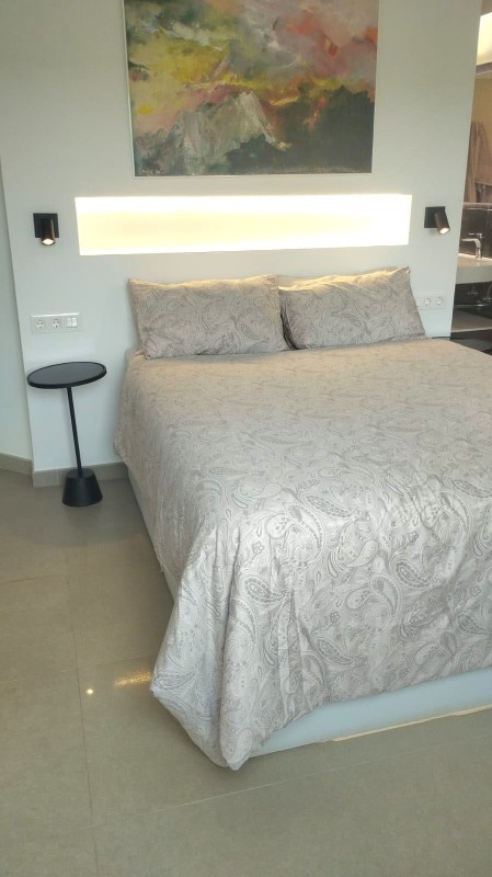 Der gesamte Wohnbereich ist mit hochwertigem, poliertem Natursteinboden ausgestattet. Für ganzjährigen Komfort sorgen ein Pelletofen im Wohnzimmer sowie eine Warm-/Kalt-Klimaanlage. Ein integriertes Audiosystem beschallt sowohl den Innenbereich als auch die Terrasse.