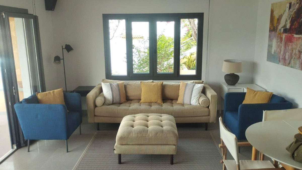 Der Wohn- und Essbereich ist hell, offen gestaltet und führt nahtlos auf die großzügige Hauptterrasse – perfekt für das Leben im Freien zu jeder Jahreszeit. Die moderne, kürzlich renovierte Küche ist vollständig mit hochwertigen Geräten ausgestattet und verbindet Funktionalität mit elegantem Design.