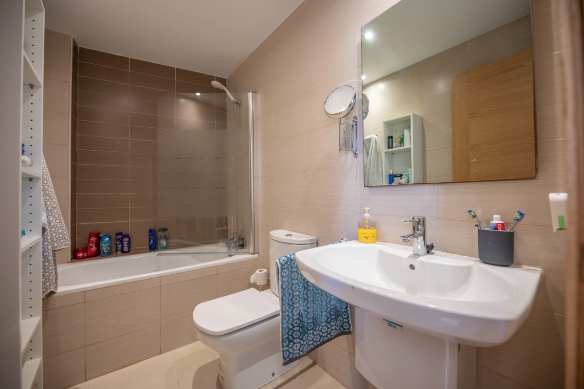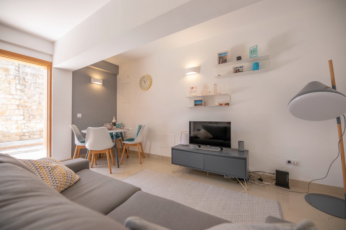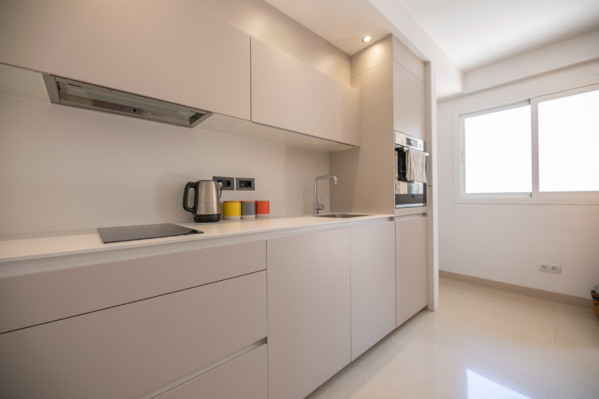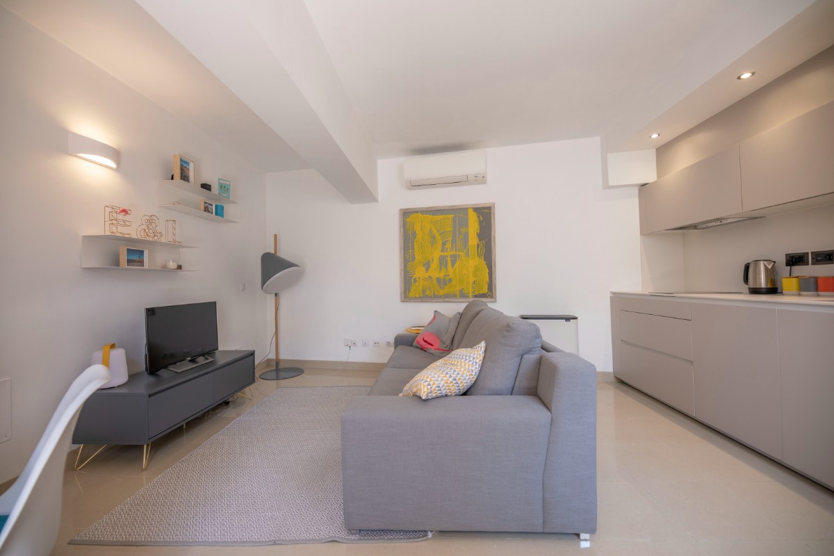 Diese Wohnung befindet sich im Erdgeschoss eines kleinen Gebäudes mit weiteren 4 Wohneinheiten. Die Wohnung ist in perfektem Zustand und verfügt über einen Wohnbereich mit offener Küche, ein komplettes Badezimmer und ein Doppel-Schlafzimmer. Es ist in beiden Zimmern mit einer Klimaanlage ausgestattet. Jede der 4 Wohnungen nutzt den Terrassenbereich direkt vor der eigenen Wohnung, da es sich um Gemeinschaftseigentum handelt. Der Bereich vor der zur verkaufenden Wohnung liegt am Ende des Ganges und ist daher sehr ungestört. Die Terrasse ist sehr sonnig und ideal zum Sonnenbaden und Entspannen, nur wenige Meter vom belebtesten Teil des Hafens entfernt.