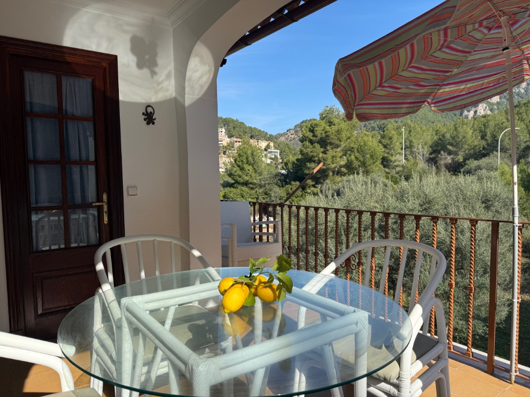 Dieses klassische mediterane Wohnhaus mit 4 Apartments befindet sich in nur wenigen Metern Entfernung vom Hafen Port de Sóller . Hier gibt es ein zahlreiches Angebot and Restaurants, Geschäften und einen kleiner Strand. Die kleine historische Holzbahn fährt täglich mehrere Male nach Sóller und auch Palma, wobei der Bushalteplatz ebenfalls schnell von dieser Wohnung zu erreichen ist. 1 Stellplatz für ein Auto steht zur Verfügung und die Wohnung befindet sich im 2. Stock ohne Aufzug. Die Wohnung ist grosszügig geschnitten und bietet geräumigen Wohnbereich mit TV, Internet , komplett ausgestattete Küche mit Geschirrspüler und Waschmaschine , drei Schlafzimmer und ein Badezimmer, sowie Gäste WC. Die Wohnung ist mit Ventilatoren ausgestattet. Vor der Küche befindet sich eine Frühstücksterrasse die um die Wohnung bis zum Wohnzimmerbereich rumführt. Es gibt verschiedene Sitzmögllichkeiten und zwei Sonnenliegen. Ideale Wohnung als Ausgangspunkt für Strandtage, Ausflüge oder Wanderungen in Familie . Die LAge ist auch perfekt um mal Urlaub ohne Auto zu planen.