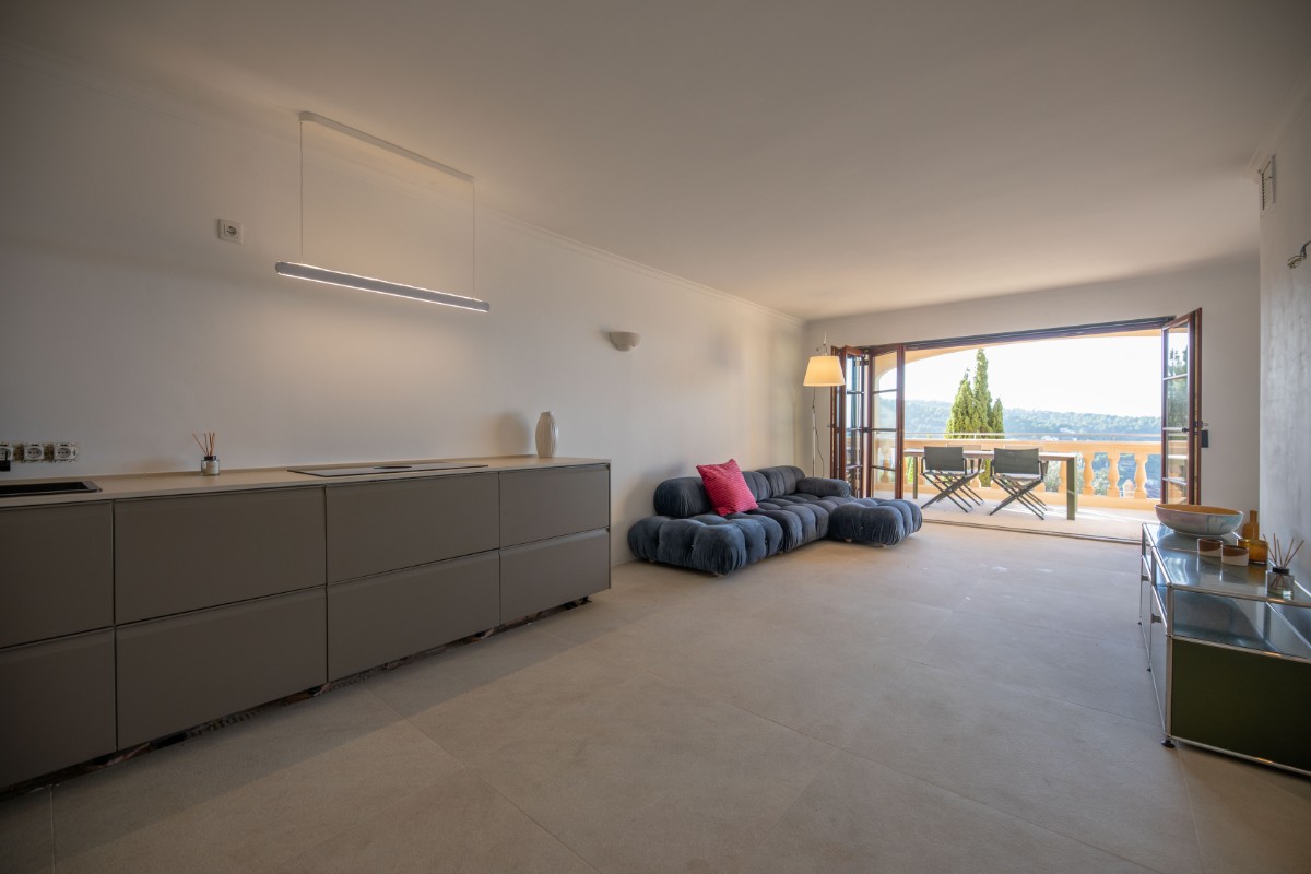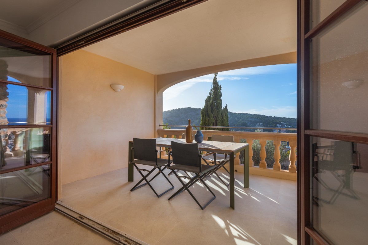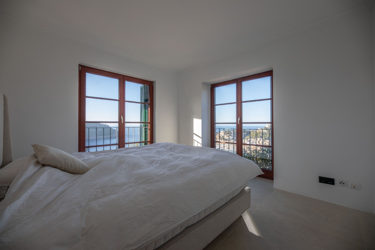 In der wohl schönsten Lage von Port de Sóller gelegen, bietet dieses moderne Apartment mit Meerblick eine unvergleichliche Position oberhalb der Bucht, direkt zum offenen Meer ausgerichtet. Die Immobilie besticht durch atemberaubende Aussichten, einen Infinity-Pool oberhalb der Gemeinschaft, eingebettet in eine entspannte natürliche Umgebung, sowie gemeinschaftliche Parkplätze. Eingebettet zwischen aus Stein gebauten Apartmentblöcken in einer gepflegten Wohnanlage, verspricht dieses kürzlich renovierte Apartment ein Wohnerlebnis auf hohem Niveau. Obwohl einige letzte Details noch fertiggestellt werden müssen, wurden neue Böden verlegt sowie komplett neue Badezimmer und eine elegante Küche installiert. Mit zwei Schlafzimmern, zwei Badezimmern (eines en suite) und zwei einladenden Terrassen ist diese Residenz der Inbegriff modernen, hochwertigen Küstenwohnens.