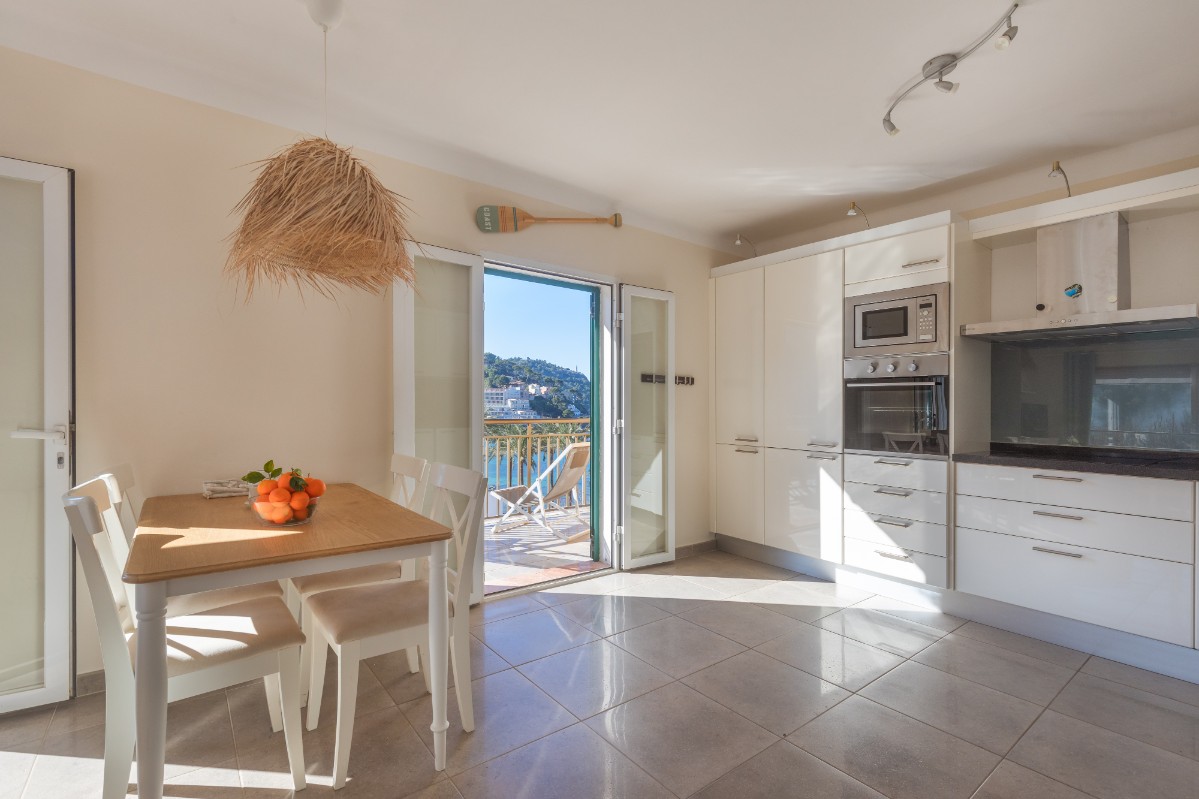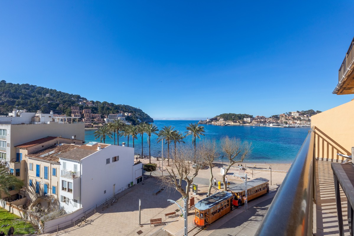 Stellen Sie sich vor, Sie wachen morgens auf und hören das Rauschen der Wellen, die nur wenige Schritte von Ihrem Apartment am Strand von Port de Sóller entfernt sanft an die Küste rollen. Diese atemberaubende Immobilie befindet sich in der obersten Etage mit Aufzug und bietet einen atemberaubenden Blick auf die umliegenden Berge und den malerischen Hafen. Das Hauptschlafzimmer mit seinem gemütlichen Doppelbett und dem bezaubernden Bergblick ist der perfekte Rückzugsort nach einem Tag voller Sonne und Meer. Das zweite Schlafzimmer bietet reichlich Platz für zwei Einzelbetten und ist ideal für Familien oder Gäste. Dank zwei Badezimmern mit modernen Duschen müssen Sie sich morgens keine Sorgen um Warteschlangen machen. Der Wohn- und Essbereich geht nahtlos in eine herrliche Terrasse über, die sich perfekt zum Sonnenbaden oder für ein romantisches Abendessen im Freien eignet. Die voll ausgestattete Küche ist der Traum eines jeden Kochs und macht das Kochen zum Vergnügen. Dank der deutschen Satellitenanlage ist auch für Unterhaltung gesorgt. Nicht zu vergessen: Dieses Juwel verfügt über eine touristische Vermietungslizenz und bestehende Buchungen, was es zu einer ausgezeichneten Investitionsmöglichkeit oder Ihrem nächsten Traumhaus am Meer macht.
