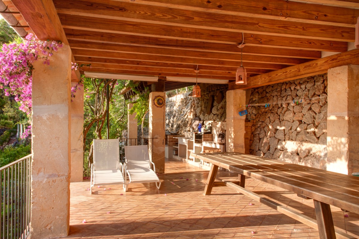 Dieses besondere Haus liegt in der wunderschönen Enklave Bens D'Avall, zwischen Sóller und Deià. Direkt am Meer gelegen besteht die Möglichkeit zum Baden in der Bucht von Alconasser, nur wenige Schritte vom Haus entfernt. Darüber hinaus können Sie das renommierte Restaurant Bens D'Avall genießen, das ebenfalls nur wenige Schritte entfernt liegt. Das Haus verfügt über drei komfortable Schlafzimmer und drei Badezimmer mit wunderschönen Marmorduschen. Es ist zu beachten, dass sich auf dem Grundstück zwei weitere Häuschen befinden, die renoviert werden könnten und mehr Zimmer ermöglichen würden. Die Aussicht, die dieses Anwesen bietet, ist wirklich magisch.