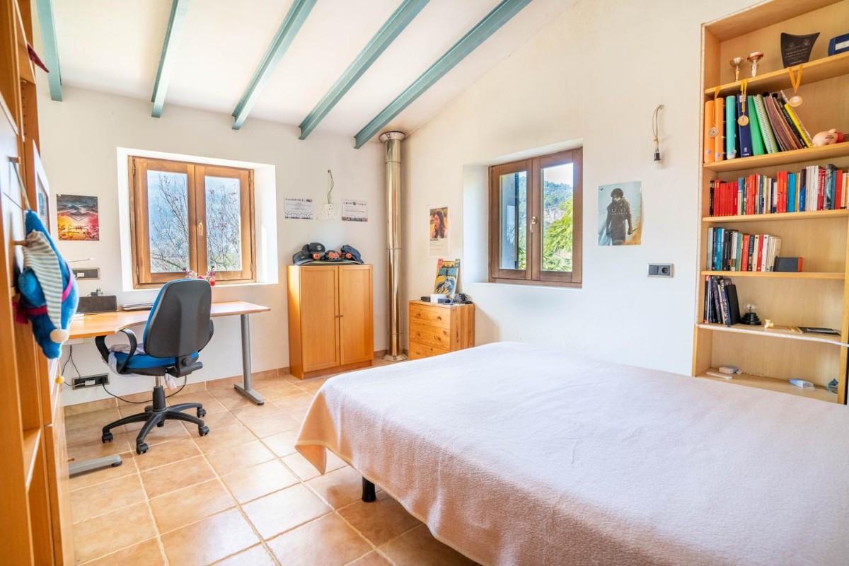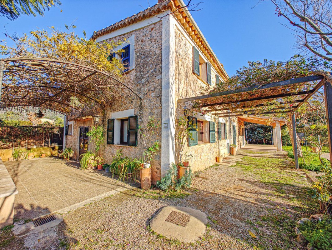 Das Äußere ist ebenso beeindruckend: ein Swimmingpool, umgeben von einem schönen Garten und einem großen Grundstück mit Oliven- und Orangbäumen, perfekt für die Freizeit im Freien. Das Grundstück verfügt über ein automatisches Bewässerungssystem und Wasser aus zwei Quellen: einem Brunnen (mit zwei Brunnen auf dem Grundstück) und Wasser aus Sa font de sa Olla, das für eine Stunde verfügbar ist.