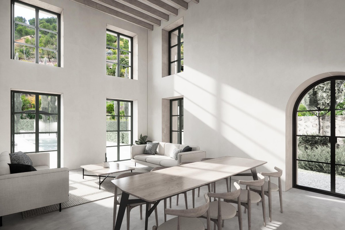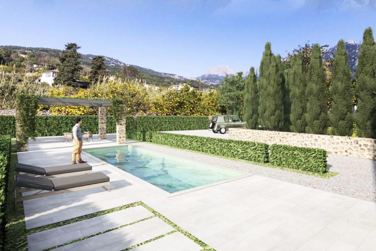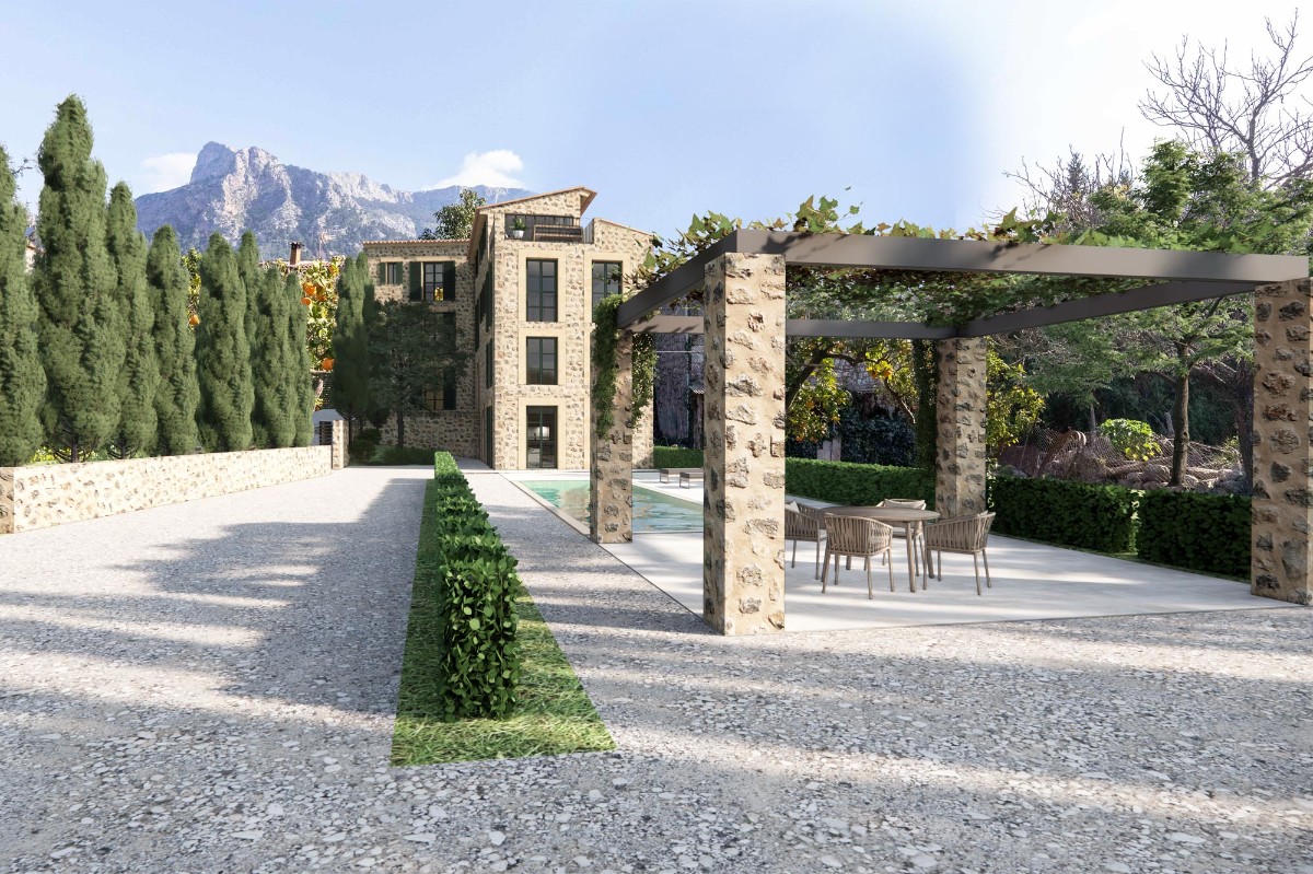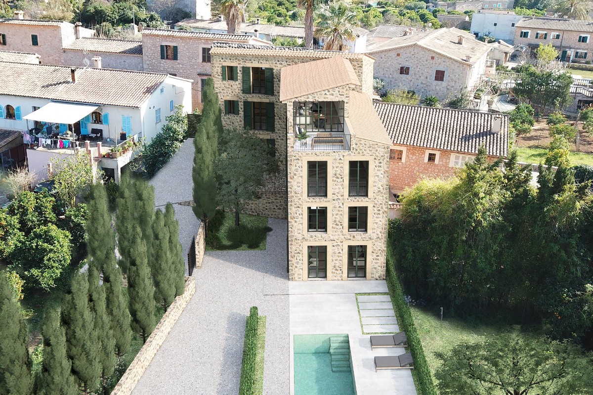 Es handelt sich um ein Renovierungsprojekt in sehr schöner und ruhiger Lage am Stadtrand von Sóller. Auf drei Etagen (jeweils 200 m2) verfügt das Haus über eine bebaute Gesamtfläche von insgesamt ca. 600 m2. Geplant sind zwei Wohnzimmer, eine offene Küche, fünf Schlafzimmer und fünf Badezimmer, ein Keller, mehrere Terrassen, ein 9 x 3 Meter grosser Swimmingpool und Parkplätze für bis zu 8 Fahrzeuge. Der angegebene Preis von 1.955.000 Euro beinhaltet die Baugenehmigung und den Rohbau ohne Innenwände, sodass der Käufer die Aufteilung nach seinen eigenen Wünschen wählen kann. Es besteht die Möglichkeit, ein schlüsselfertiges Haus, in Grundriss und Ausstattung auch nach den Wünschen des Käufers, zum Preis von 3.255.000 Euro zu erwerben. Das Objekt kann auch im aktuellen Zustand und mit Baugenehmigung erworben werden, um dann die Sanierung selbst auszuführen. Im letzten Fall würde der Preis 1.255.000 Euro betragen.