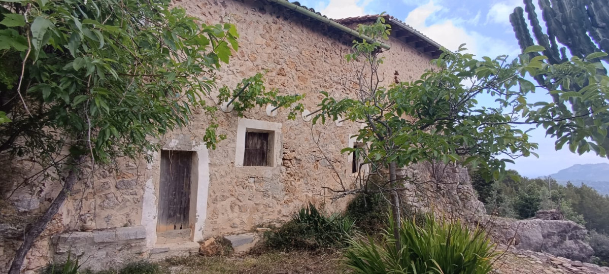 Über einen schmalen kleinen privaten Bergweg, durch wunderschoene Olivenhaine und an kleinen Berghäuschen vorbei gelangt man nach ca 30 Minuten vom Dorf entfernt diese kleine authentische Finca aus Naturstein und mit Original Tafona. Das Haus befindet sich auf einem kleinen Bergvorsprung und ist an einer Seite mit einer bereits renovierten Finca des Nachbargrundstückes verbunden. Das Haus ist auf drei Etagen aufgeteilt und bietet Platz für mindestens drei Schlafzimmer - je nach Sanierungsprojekt und Ideen der zukünftigen Eigentümer. Der Blick ist Richtung Puig Major ( Nord) ausgerichtet und seitlich sieht man die Bucht von Port de Sóller. Das Objekt hat eigenes Wasservorkommen und die Möglichkeiten eines Stromanschlusses. Das Objekt benötigt umfangreiche Sanierungsarbeiten.