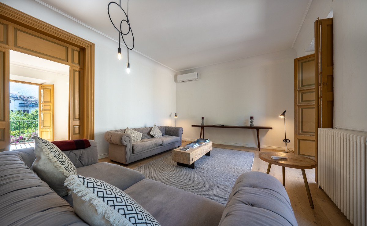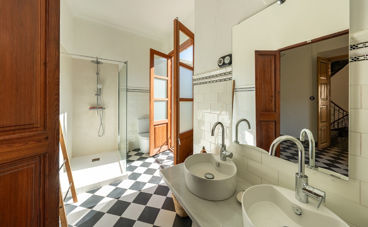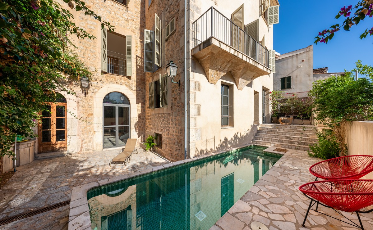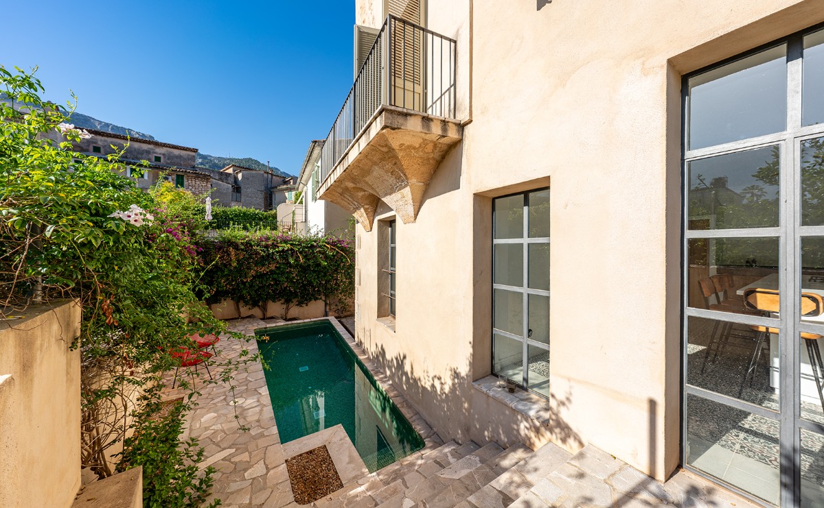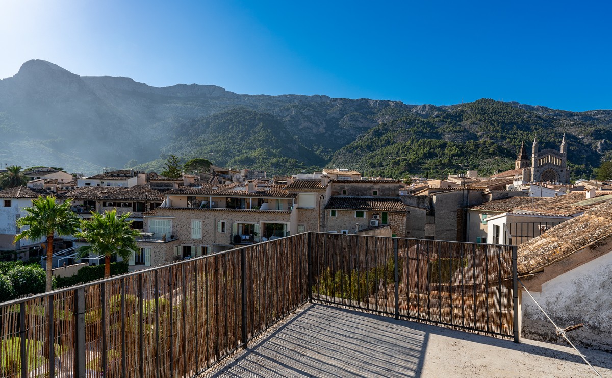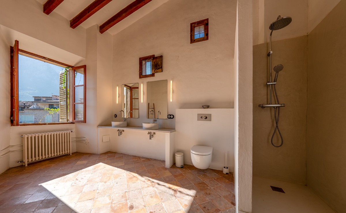 Ein Meisterwerk der Vergangenheit und der Gegenwart. Zweifellos eines der einzigartigsten Objekte in Sóller, in dem Tradition, Eleganz und Moderne in Perfektion miteinander verschmelzen. Die ca. 643 m² sind auf drei Etagen verteilt. Der Haupteingang mit seinen Steinböden und dem stuckverzierten Torbogen empfängt uns in eine Welt der Ruhe. Auf dieser Etage liegen ein großes Wohnzimmer mit Kamin, das Büro und eine Bar mit direktem Zugang zum Patio mit Swimmingpool. Im Hochparterre befinden sich das Esszimmer, die Küche und ein Gästebad. In den beiden oberen Etagen verfügt das Haus über 8 Schlafzimmer mit 4 Bädern (zwei davon en-suite), sowie ein Wohnzimmer mit Terrasse. Auf dem Dach liegt eine große Terrasse mit 360º Panoramablick auf das Tal, die Berge und die Stadt. Das Haus wurde mit viel Feingefühl renoviert, und die geschmackvolle, eklektische Einrichtung ist wirklich außergewöhnlich. Jede Ecke lädt zum Verweilen ein, zum Sitzen und Lesen eines guten Buches, zum Eintauchen in das erfrischende Wasser des Swimmingpools bei freiem Blick und viel Sonne. Das Haus ist extrem umweltfreundlich mit einer neu installierten Solarstromanlage, was es fast den ganzen Sommer energieunabhängig macht (sogar mit Klimaanlage und Pool). All dies, sowie die zentrale Lage, nur zwei Gehminuten von Sóllers Hauptplatz entfernt, machen die Immobilie zu einem architektonischen Schmuckstück, das seinesgleichen sucht. Das Haus verfügt außerdem über Zentralheizung und Klimaanlage. Zweifellos ein Haus das seinesgleichen sucht!