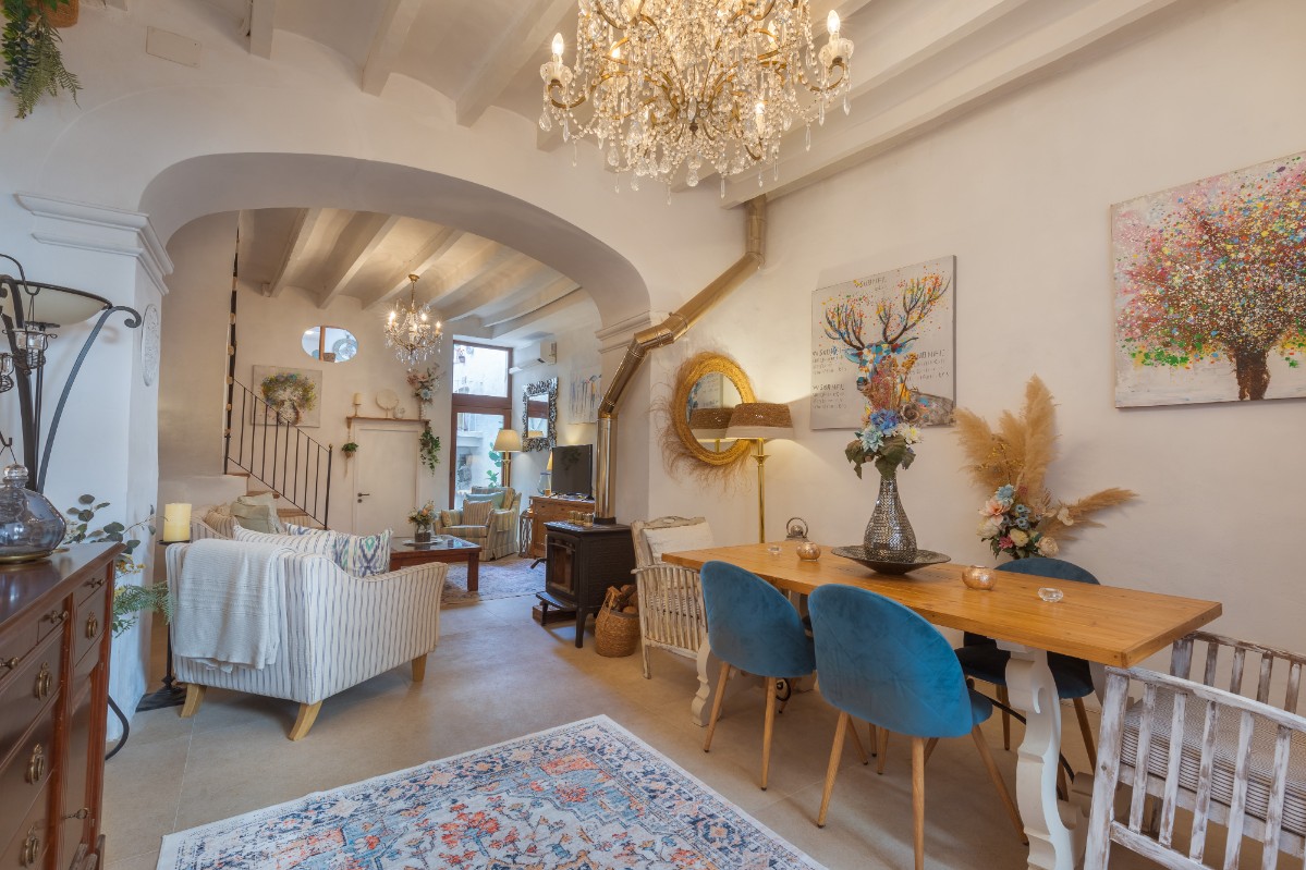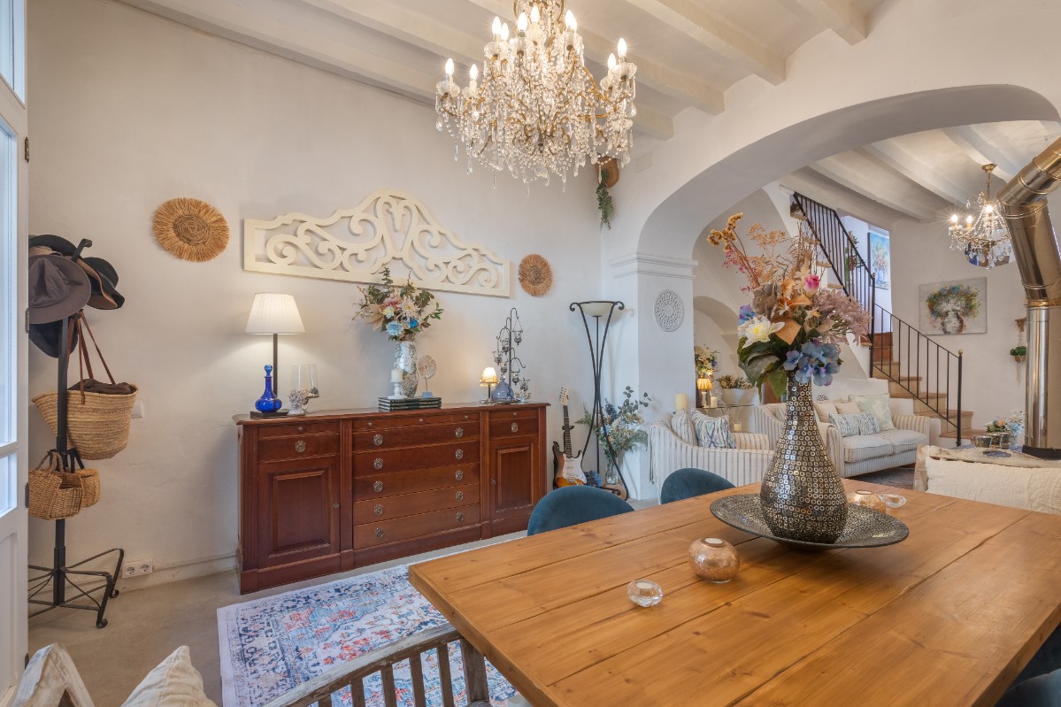 In einer ruhigen und charmanten Seitenstraße, nur wenige Schritte vom lebendigen Hauptplatz von Sóller entfernt, befindet sich dieses liebevoll renovierte Stadthaus. Die Immobilie vereint auf harmonische Weise traditionellen mallorquinischen Charme mit modernem Wohnkomfort und schafft eine warme, einladende Atmosphäre.
