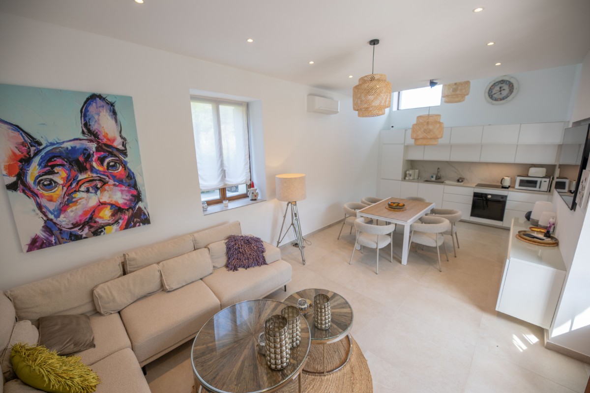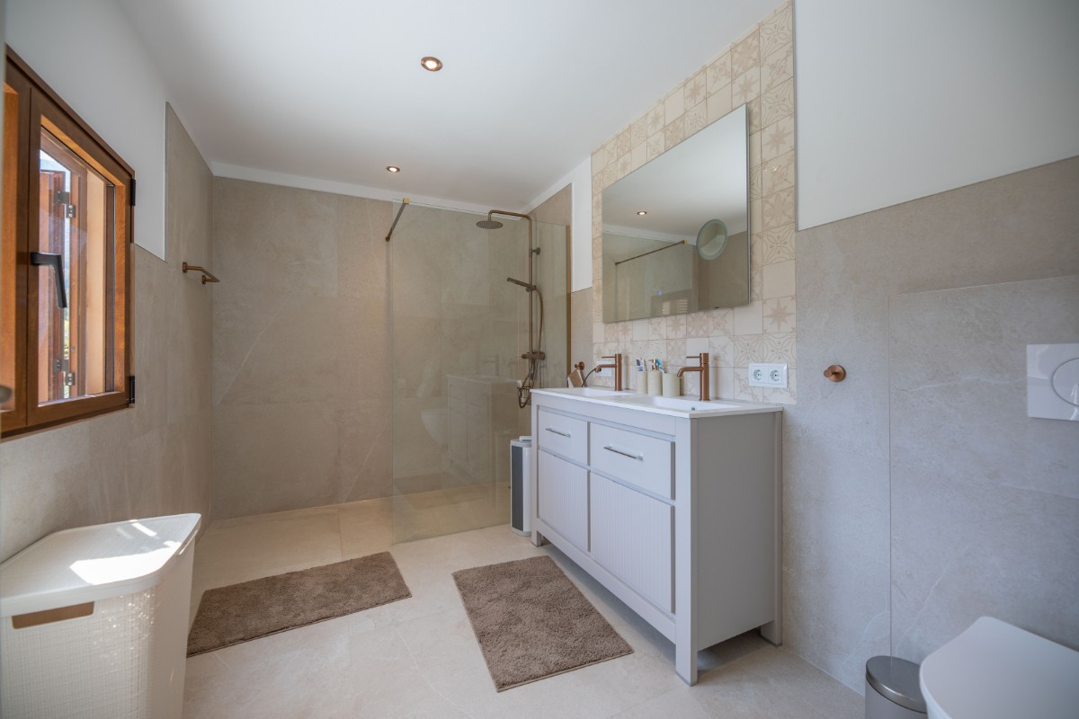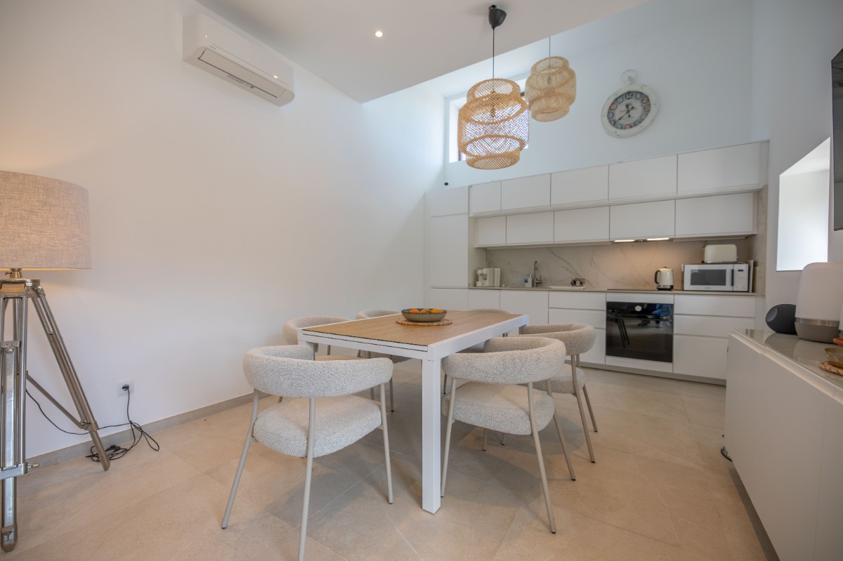 Es verfügt über 2 gemütliche Wohnzimmer (eines davon separat als Erweiterung zum Gartenbereich), die vielfältige Nutzungsmöglichkeiten bieten, sei es als Ruhe-, Freizeit- oder Treffpunkt. Dias Haus verfügt über 3 komplett ausgestattete Badezimmer, die alle mit Fußbodenheizung ausgestattet sind und so das ganze Jahr über zusätzlichen Komfort bieten.