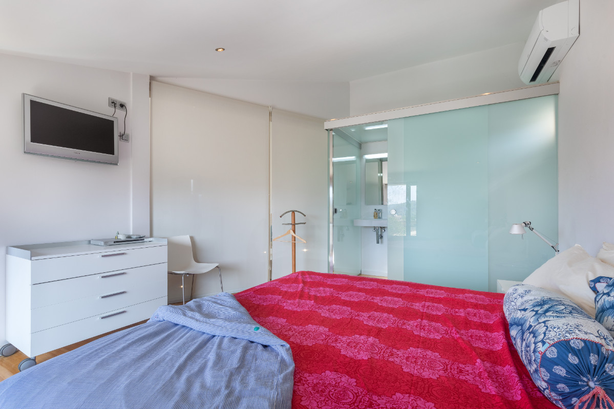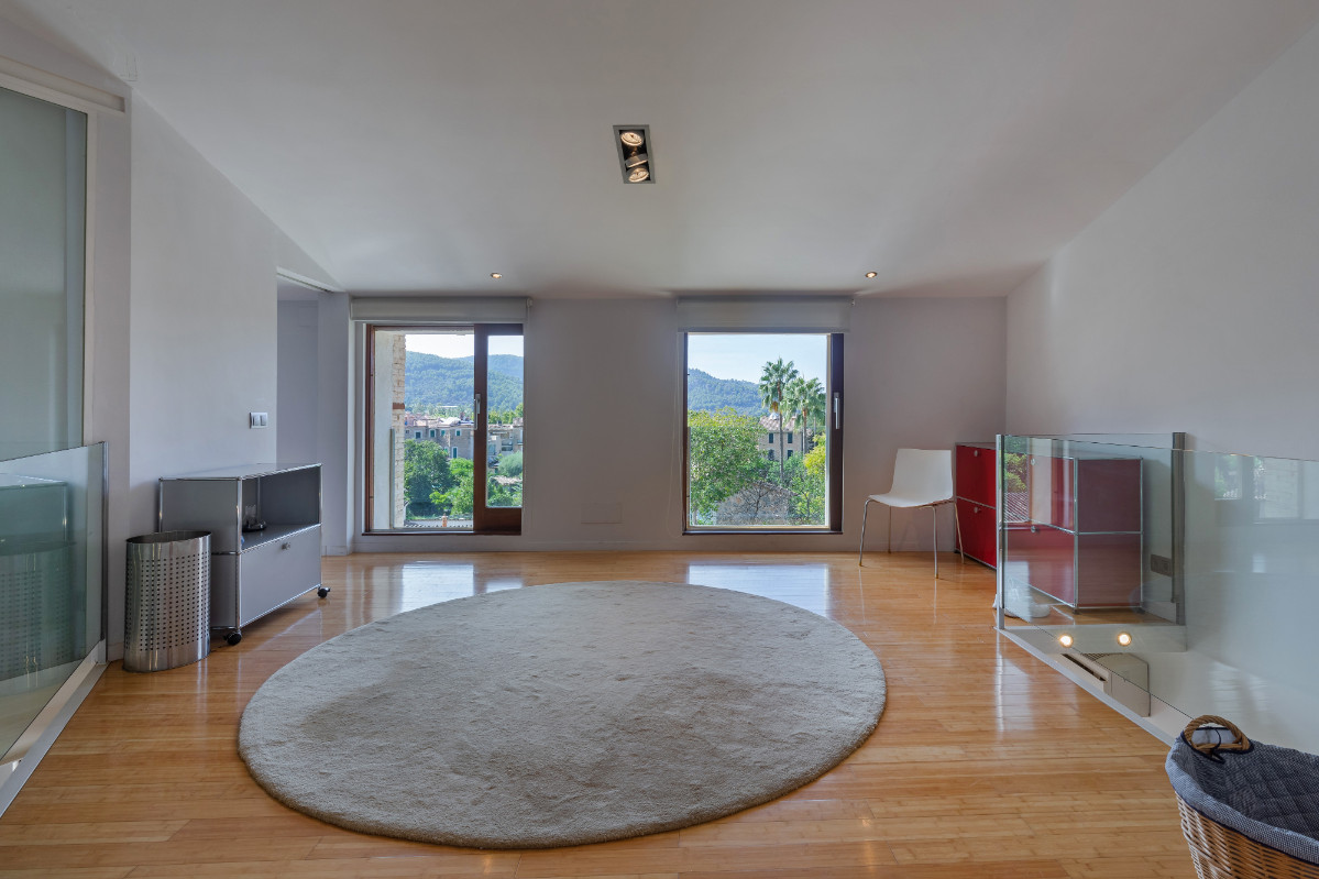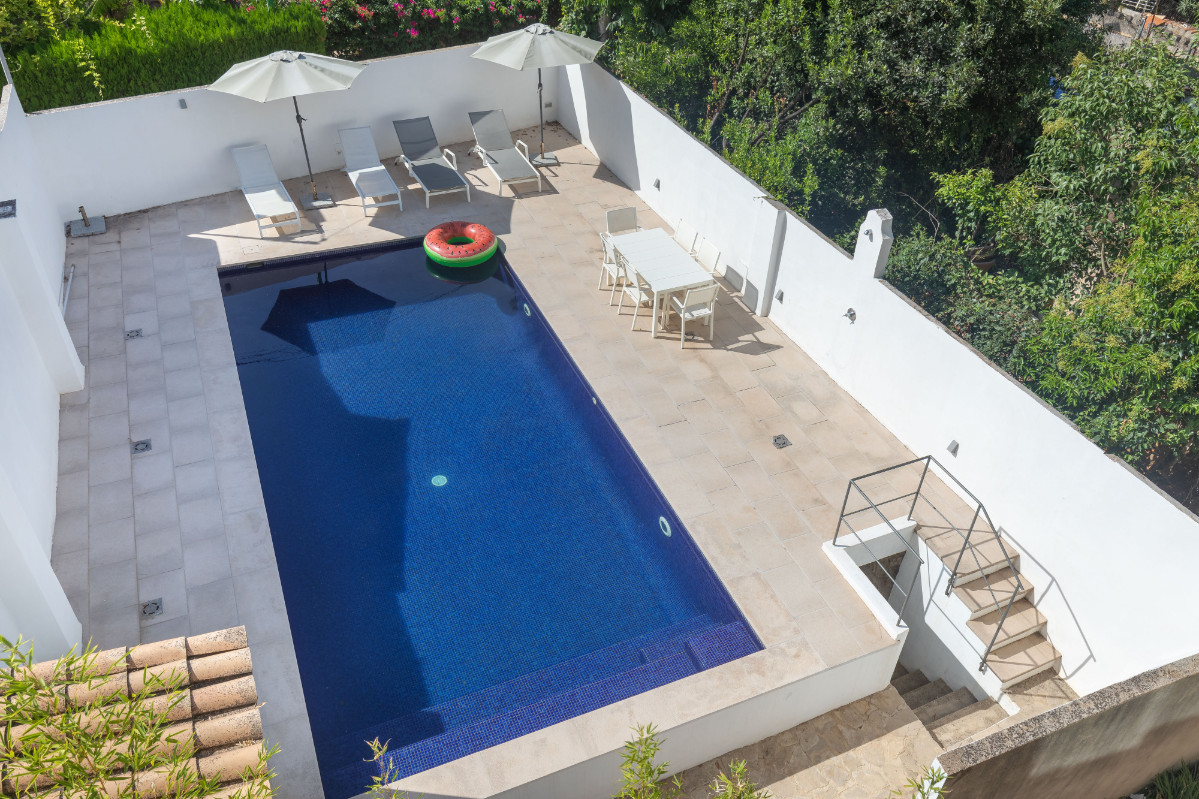 Versteckt hinter der Fassade eines alten Tischlereigebäudes, überrascht dieses Loft beim Betreten. Hohe Decken und ein fantastischer, unverbauter Blick über schöne Gärten bis hin zu den Bergen. Aufgeteilt auf zwei Etagen gibt es einen geräumigen Wohnbereich mit großzügiger Küche und Essbereich, sowie ein Badezimmer mit Dusche. Im Obergeschoss gibt es ein Hauptschlafzimmer en suite (ohne Dusche), zwei kleinere Schlafzimmer, die sich ein Badezimmer mit Badewanne teilen. Die Dachterrasse ist der perfekte Ort für ein Abendessen im Freien oder eine entspannende Yoga-Sitzung mit Blick über die Dächer des Dorfes. Als ob nicht genug , gehört zu diesem Loft auch noch ein Stück Land vor der Hausgemeinschaft mit eigenem Pool, Grillplatz und Toilettenraum. Der perfekte Ort, um abzuschalten und den Tag in der Sonne am Pool zu genießen. Die Lage in einer ruhigen Seitenstraße der bekannten Calle La Luna ermöglicht die Plaza, Restaurants und Einkaufsmöglichkeiten in wenigen Schritten zu erreichen.