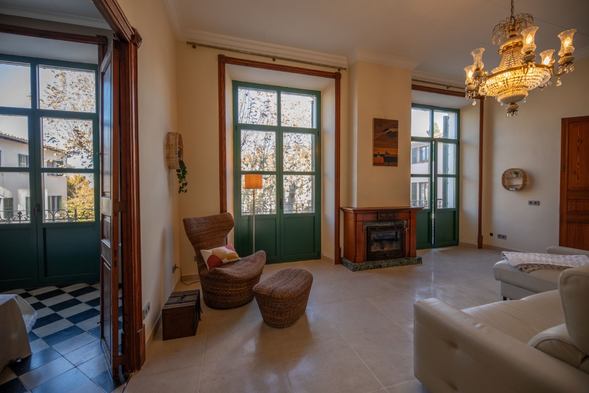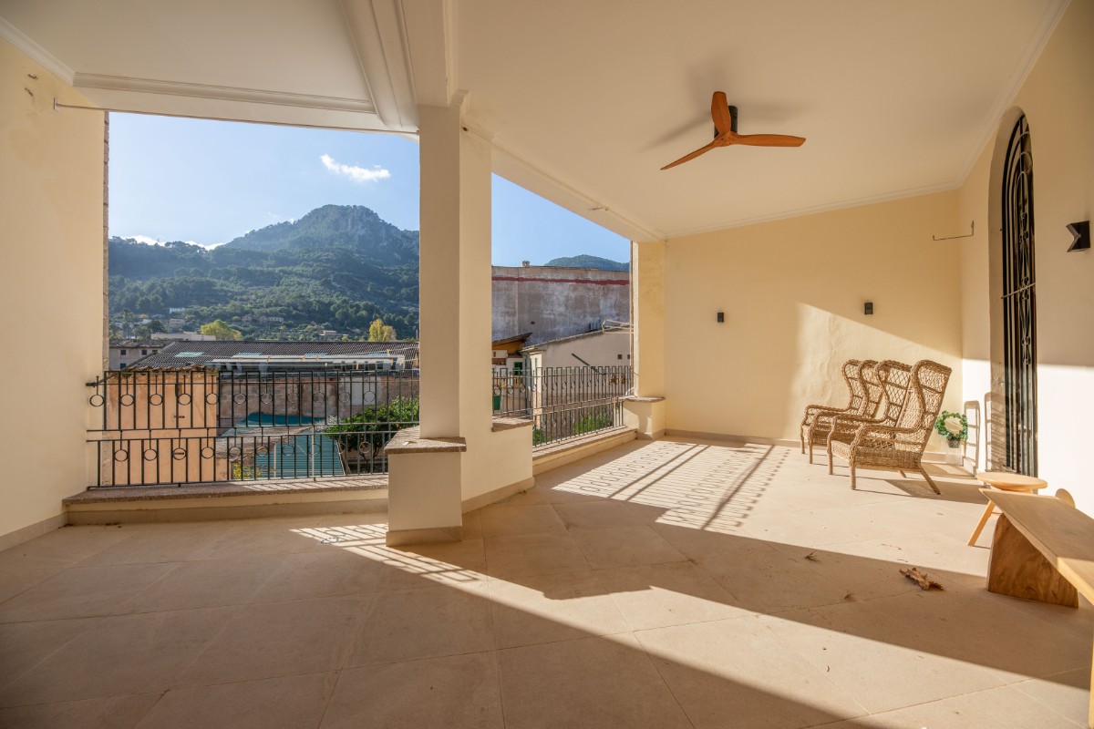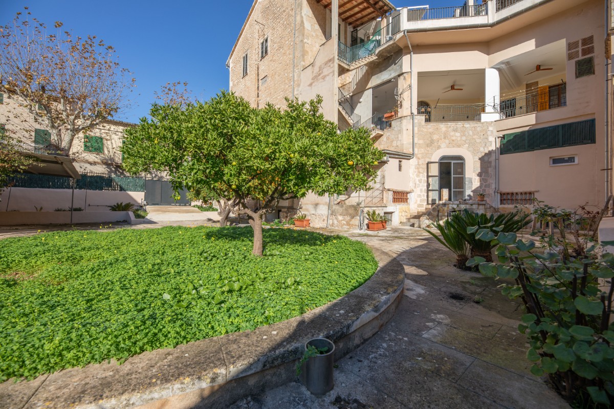 Diese einzigartige Wohnung befindet sich direkt an der bekannten Plaza America, welche die berühmte Gran Via in Sóller abschließt. Das imposante Herrenhaus Gebäude war ursprünglich ein Hotel und ist jetzt in 5 Einheiten unterteilt. Diese Wohnung ist die größte aller Einheiten und über zwei Etagen verteilt und verfügt über einen riesigen Außenbereich mit überdachtem Parkplatz. Die Wohnung wurde vor ein paar Jahren renoviert und alle Elektroinstallationen und Installationen sind neu. Besonders beeindruckend sind der Eingangsbereich, die hohen Decken und die handgefertigten Wandfliesen in einem der Wohnräume. Im Erdgeschoss führt der Wohnbereich in den Gartenbereich. Im Obergeschoss befinden sich ein zweites Wohnzimmer mit Kamin, drei Schlafzimmer und ein Badezimmer, eine Küche und eine überdachte Terrasse mit Blick in die Berge. Erwähnenswert ist ein zweiter Eingang im Erdgeschoss mit großem Stauraum und einem zweiten Badezimmer mit Dusche. Eine Lizenz für einen 13 x 2,30 m großen Pool ist im Preis enthalten.