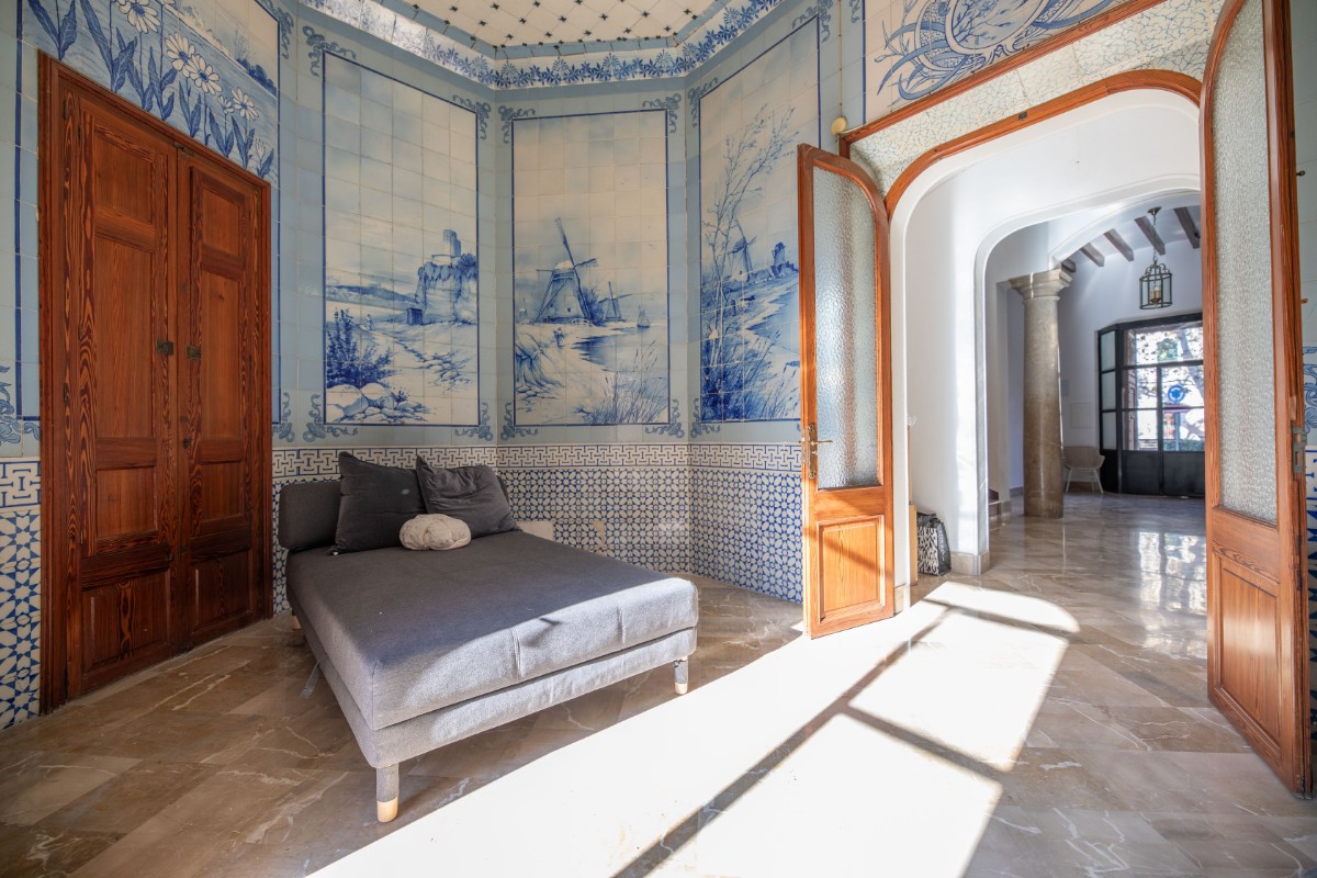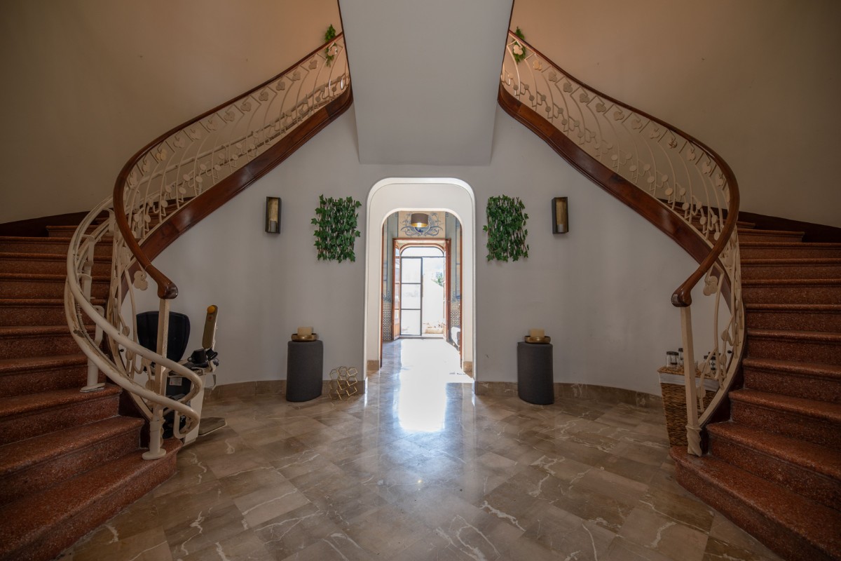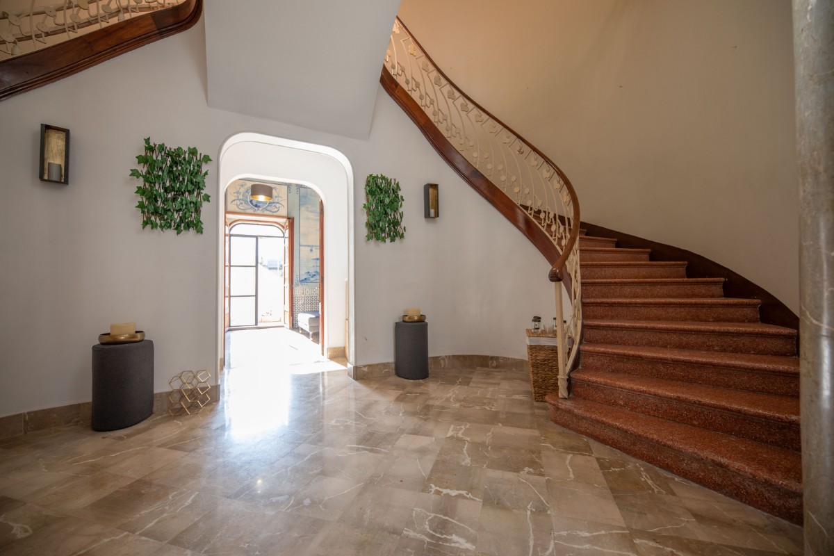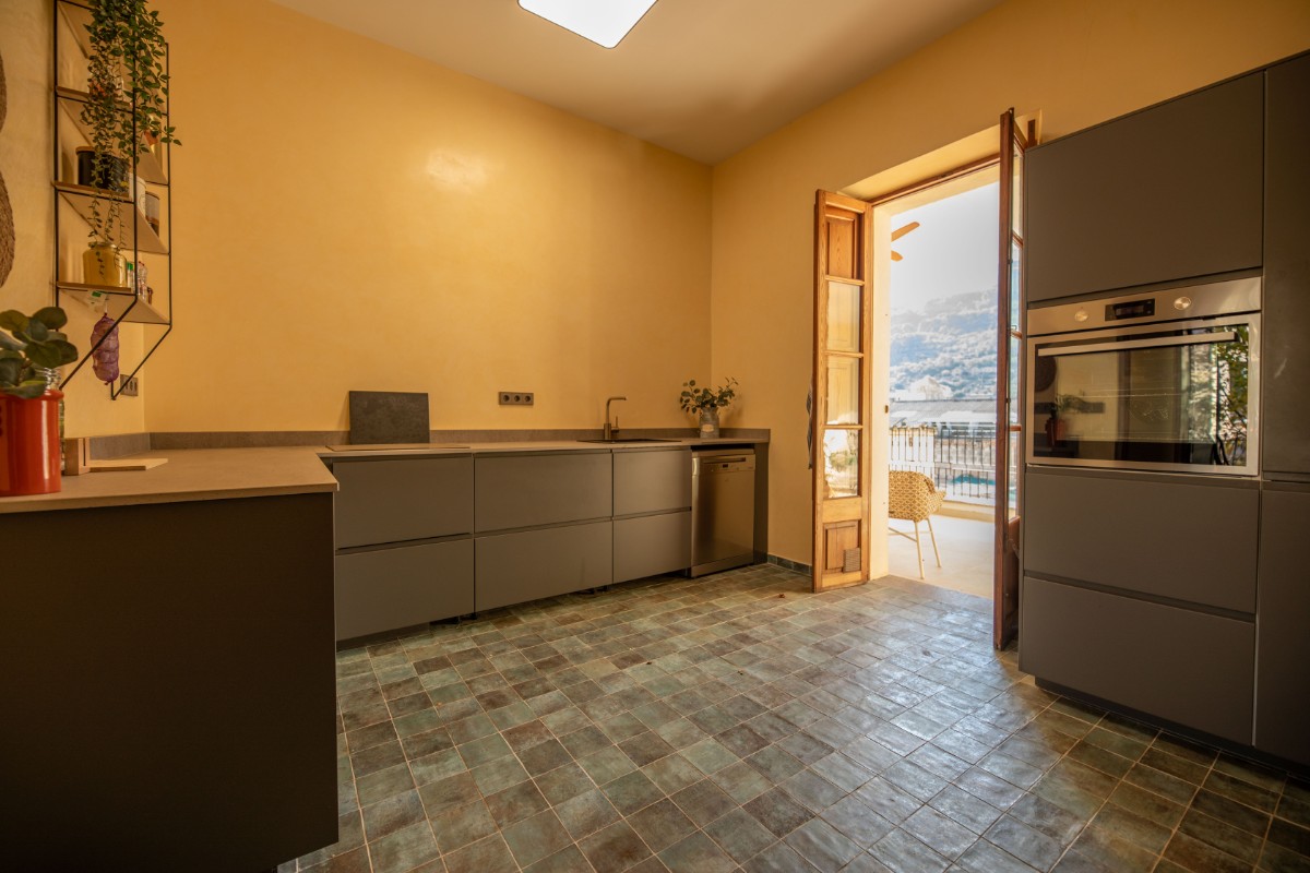 Diese einzigartige Wohnung befindet sich direkt an der bekannten Plaza America, welche die berühmte Gran Via in Sóller abschließt. Das imposante Herrenhaus Gebäude war ursprünglich ein Hotel und ist jetzt in 5 Einheiten unterteilt. Diese Wohnung ist die größte aller Einheiten und über zwei Etagen verteilt und verfügt über einen riesigen Außenbereich mit überdachtem Parkplatz. Die Wohnung wurde vor ein paar Jahren renoviert und alle Elektroinstallationen und Installationen sind neu. Besonders beeindruckend sind der Eingangsbereich, die hohen Decken und die handgefertigten Wandfliesen in einem der Wohnräume. Im Erdgeschoss führt der Wohnbereich in den Gartenbereich. Im Obergeschoss befinden sich ein zweites Wohnzimmer mit Kamin, drei Schlafzimmer und ein Badezimmer, eine Küche und eine überdachte Terrasse mit Blick in die Berge. Erwähnenswert ist ein zweiter Eingang im Erdgeschoss mit großem Stauraum und einem zweiten Badezimmer mit Dusche. Eine Lizenz für einen 13 x 2,30 m großen Pool ist im Preis enthalten.