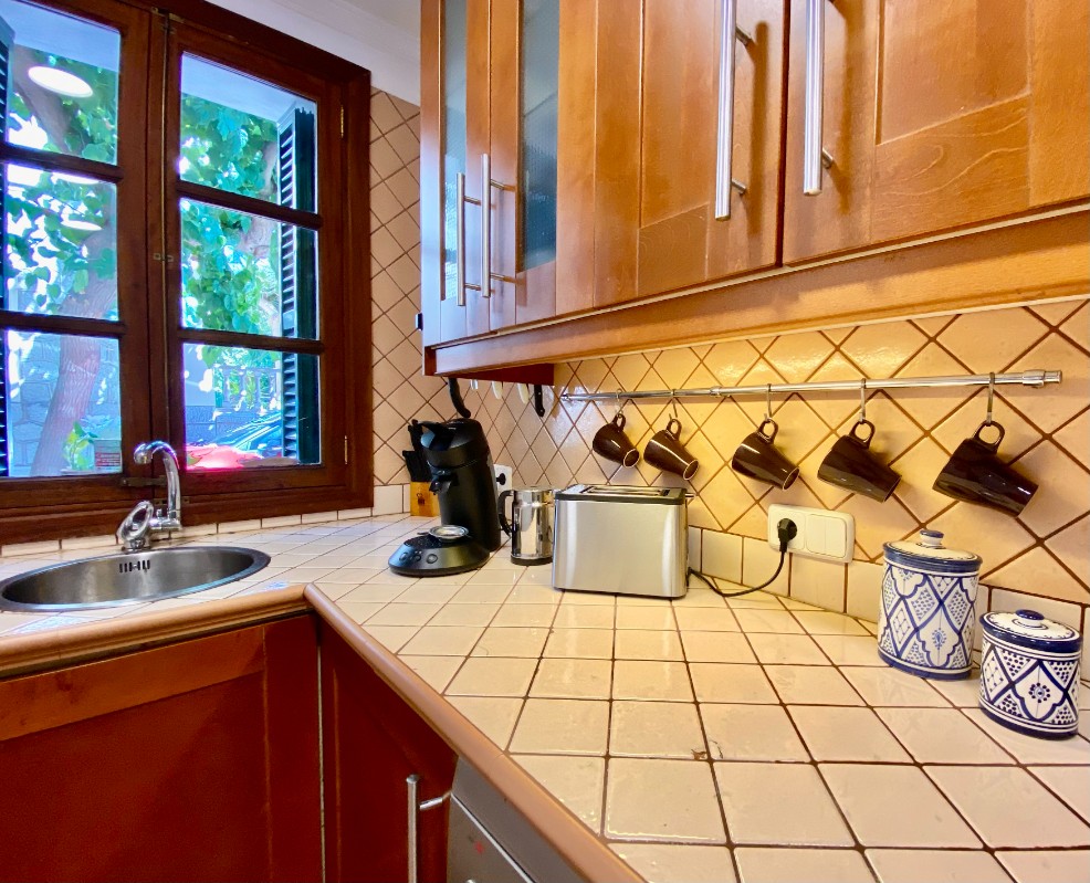 Die klimatisierte Stadthauswohnung liegt in einer ruhigen Wohngegend im Zentrum von Soller in der Calle Fortuny. Der private Wohlfühlgarten mit Erfrischungs-Pool (6x2,5m) und zusätzlicher Außenküche dient ausschließlich Ihrer privaten Nutzung. Zudem bietet die Wohnung im Erdgeschoss einen Wohn - Esszimmerbereich mit offener Wohnküche, ein kleines Schlafzimmer mit Doppelbett 135 cm , sowie ein Bad mit Dusche. Über wenige Stufen hinab gelangt man in den Garten. Das Untergeschoss der Wohnung bietet zwei Doppelbettzimmer mit 180x200 breiten Betten, dazu ein grosses Badezimmer . In 5 Minuten Fußweg erreicht man den Marktplatz des historischen Städtchens Soller, das durch die antike hölzerne Straßenbahn, die sich entlang der Obstplantagen und Olivenhaine schlängelt, bekannt ist. Das schöne pittoreske Städtchen Sóller wird immer beliebter, daher sind die Straßen je nach Jahreszeit gut genutzt. Wir empfehlen einen kleinen Mietwagen der sich gut handhaben lässt und mit dem einfacher Parklücken zu finden sind. ETV/9896 / ESFCTU00000702800039974300000000000000000000ETV/98964