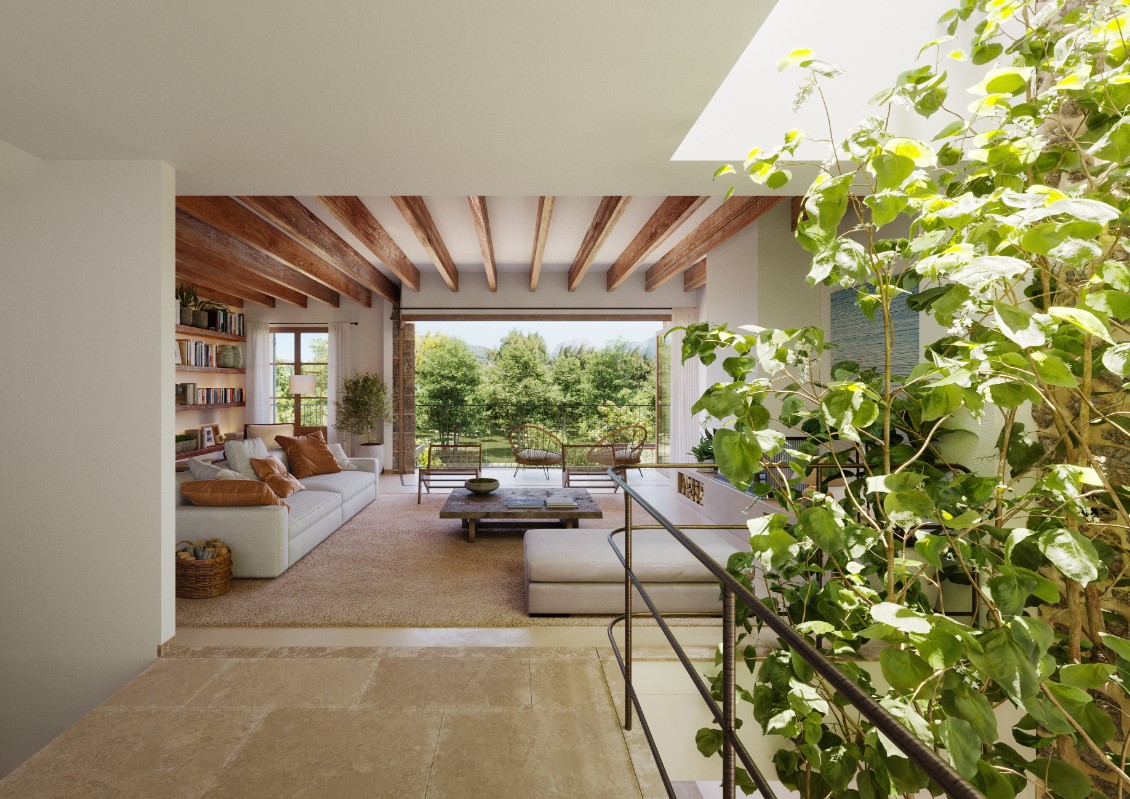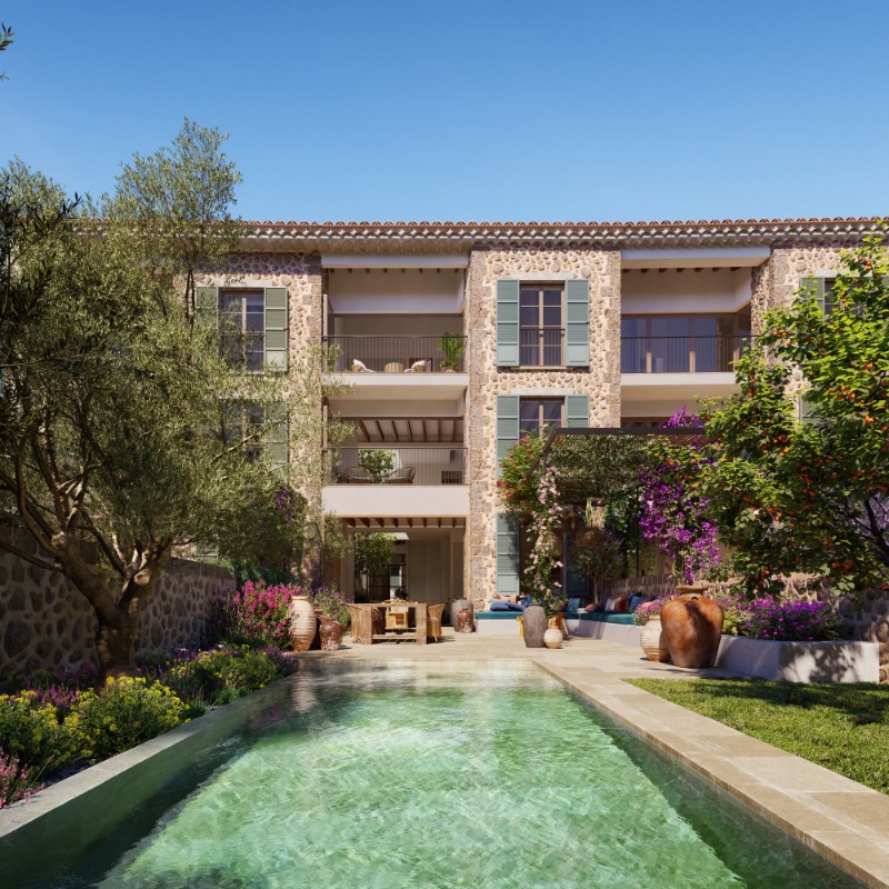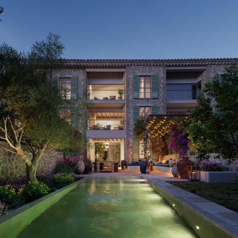 Dieses prächtige Bauprojekt mit Namen "Casas Del Ficus" umfasst drei gehobene Stadthäuser auf jeweisl eigenen Grundstück im Herzen von Sóller und spiegelt den Inbegriff des Luxuslebens wider. Jedes Stadthaus mit 4 elegant eingerichteten Schlafzimmern ist ein Zeugnis für Eleganz und Zweckmäßigkeit und wurde sorgfältig entworfen, um auch den anspruchsvollsten Geschmack zu treffen. Die Fassaden aus mallorquinischem Stein fügen sich fantastisch in die Landschaft des Tramuntana-Dorfes ein und werden ein Meisterwerk der Baukunst sein, das modernes Wohnen mit traditionellen Elementen verbindet. Die Stadthäuser verfügen über 319-329 qm bebaute Fläche und sind über drei Etagen mit zusätzlichem Keller gebaut. Im Erdgeschoss befindet sich der offene Küchenbereich mit Zugang zum Garten von ca. 100-130 qm und dem Pool von ca. 20 qm. Auf dieser Etage befindet sich auch die Garage und das Gäste-WC. In der mittleren Etage befindet sich der Wohnbereich mit Terrasse und schönem Bergblick und ein Doppelschlafzimmer mit Ankleidezimmer en suite. In der obersten Etage befinden sich drei weitere Schlafzimmer mit Badezimmern, eines davon ein großes Hauptschlafzimmer mit eigener Terrasse. Mit einem herrlich angelegten Garten mit Pergolas und Pool und nur einen Spaziergang von der charmanten Stadt Sóller entfernt, strahlt diese Immobilie ein unvergleichliches Gefühl von Raffinesse und Gelassenheit aus und verspricht einen Lebensstil von unvergleichlichem Luxus und Leichtigkeit, wie er im Tal nur schwer zu finden ist. Das Basis Projekt ist genehmigt und eine Bauausführung könnte vom Erwerber in Kürze umgesetzt werden.